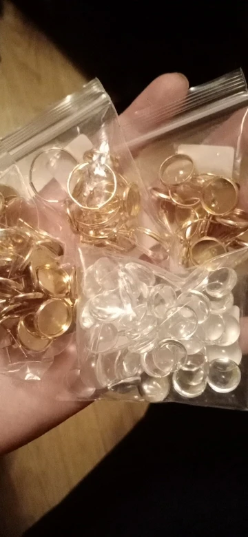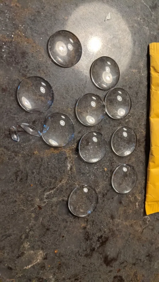 Один кабошон разбился при пересылке. Нужно лучше упаковывать большие диаметры.