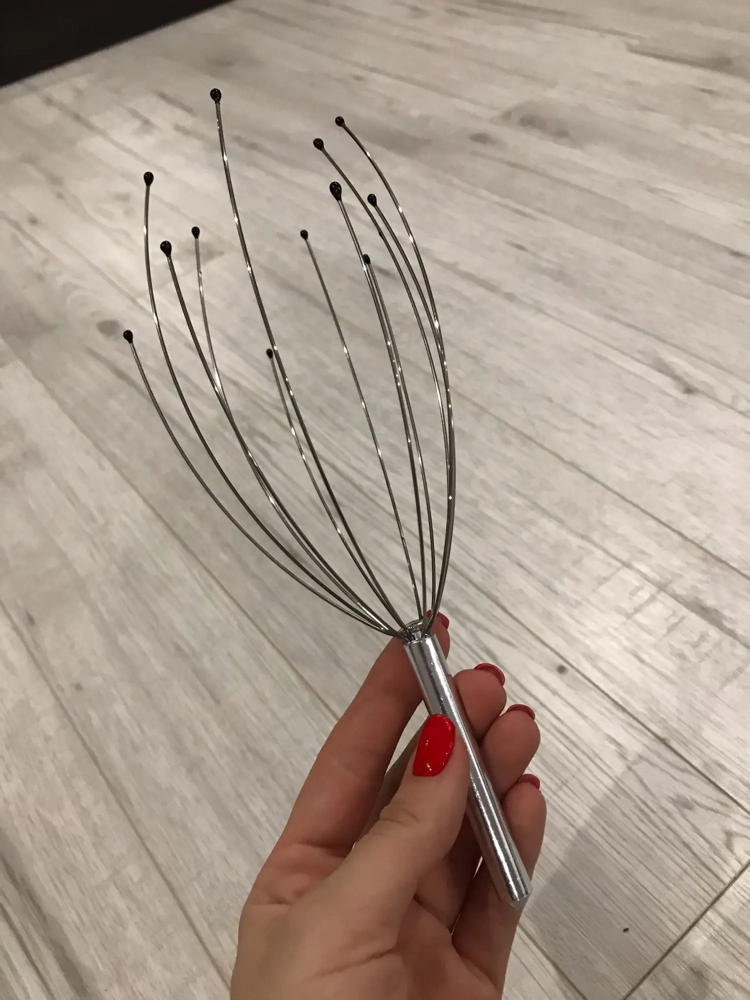 Материал: пальцы (нержавеющая сталь)Массаж головы или точек телаПомогает снять мышечное напряжение и усталость, улучшает кровообращениеСветильник массажер, идеально подходит для дома, путешествий и офисаРазмер: 23 см в длинуЦвет: золотой, серебряный, красный, фиолетовый, синий