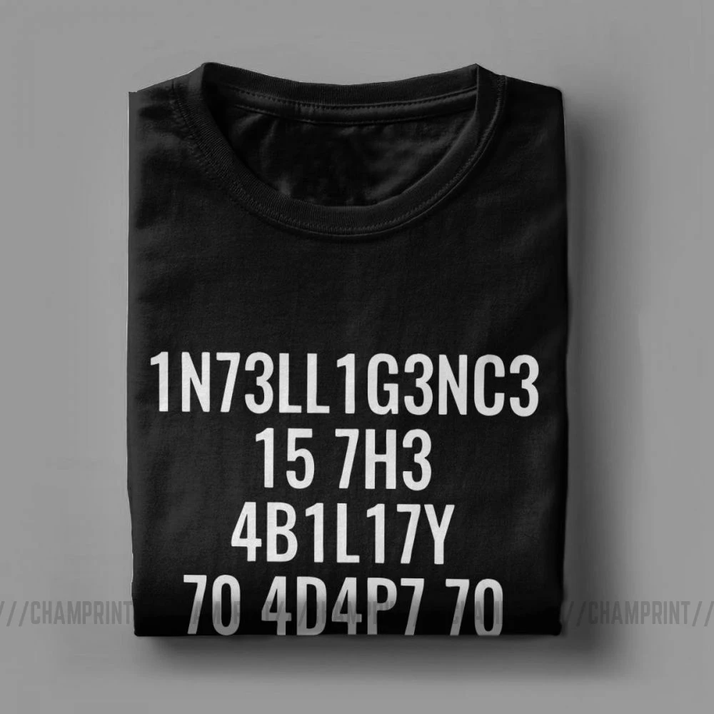 Мужские футболки с забавным интеллектом-это возможность адаптироваться к изменениям, футболки с круглым вырезом, футболки из чистого хлопка