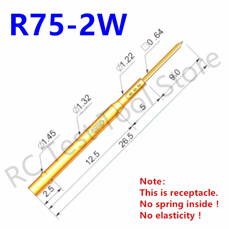 100pcs R75-2W Test Pin Receptacle Needle Sleeve Needle Seat Spring Detection Probe Needle Sleeve Length 26.5mm No Elasticity