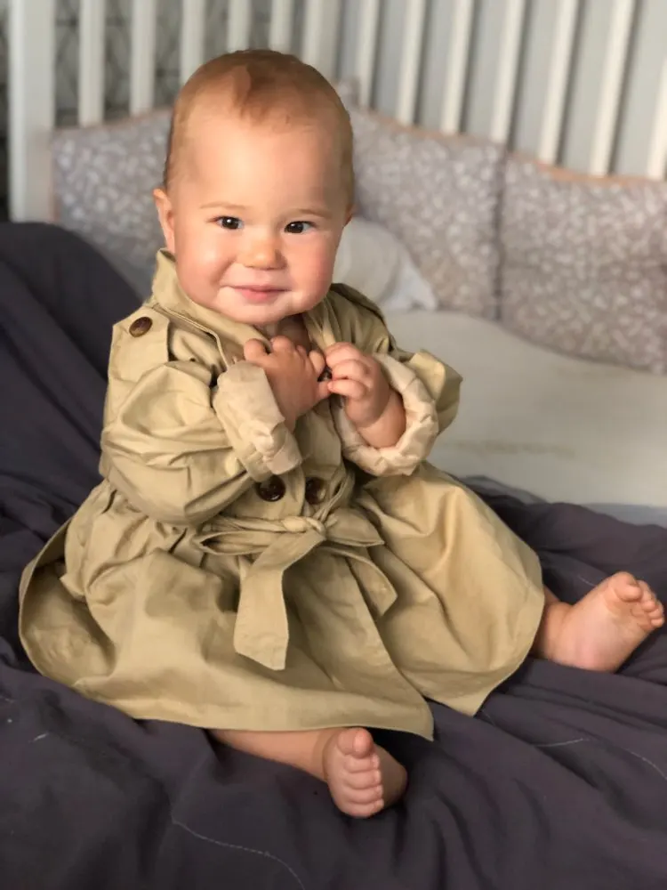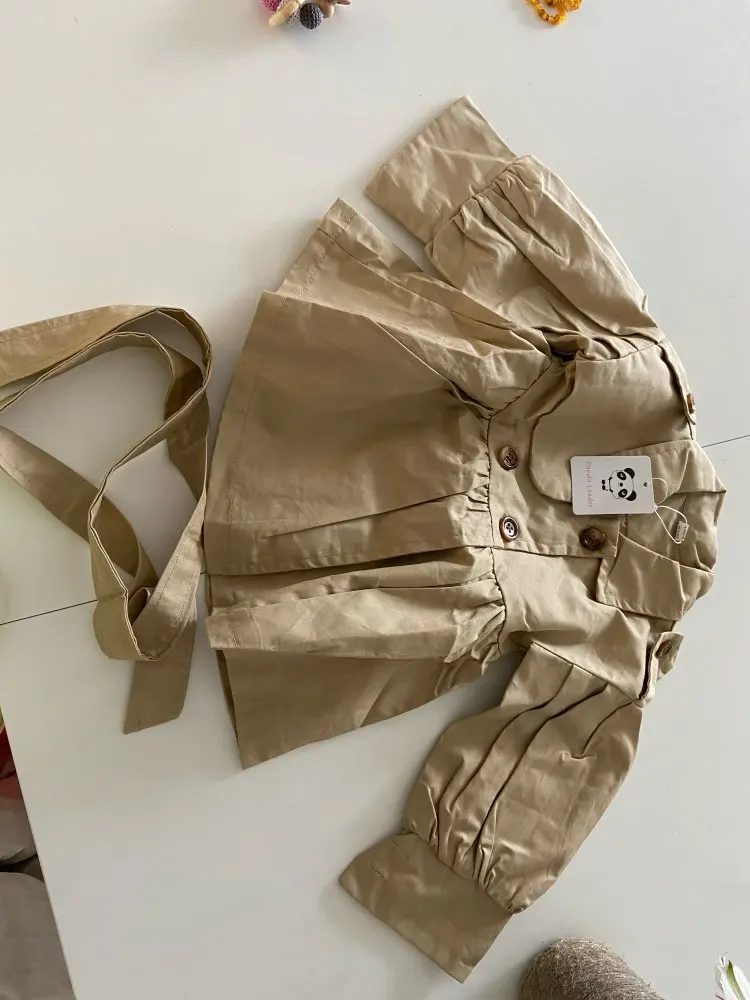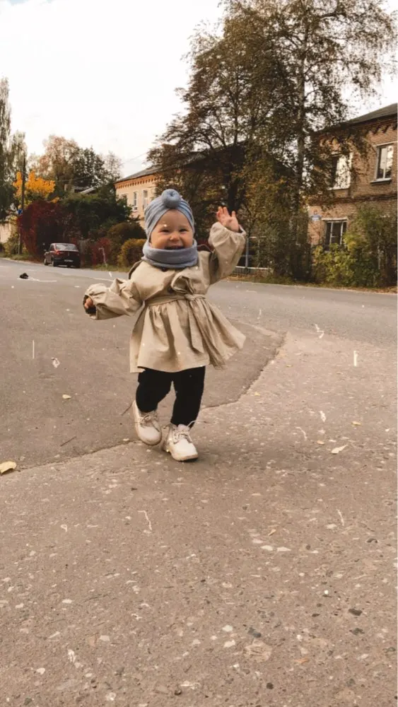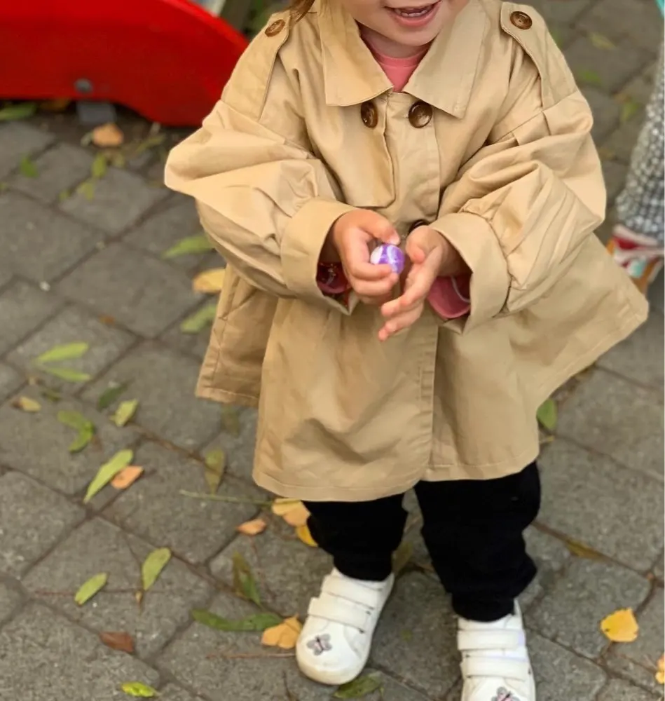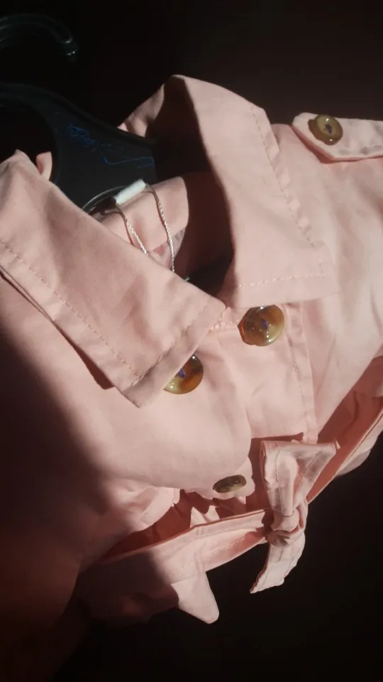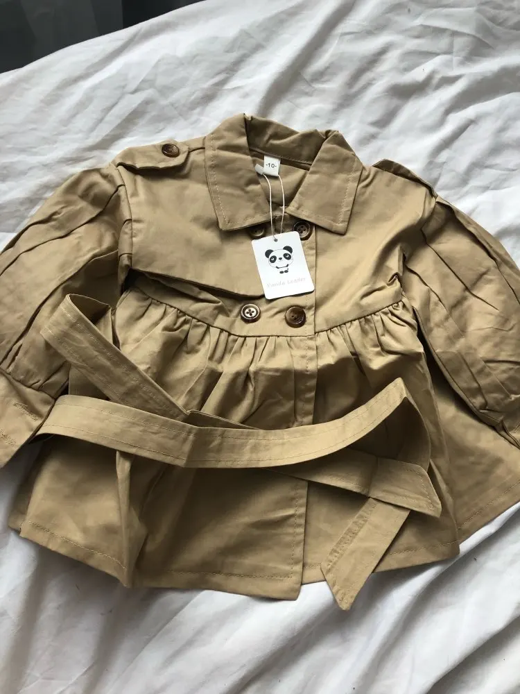 Классный тренч, смотрится красиво) на рост 90см, 2г5м, я взяла дочке 4т немного на вырост...(но на биррке на шее написано 12) Единственное что смущает это широкие манжеты, они даже на мою руку будут велики. А так всё качественно, сшито хорошо, пуговки красивые, цвет соответствует, ниток и запаха нет.