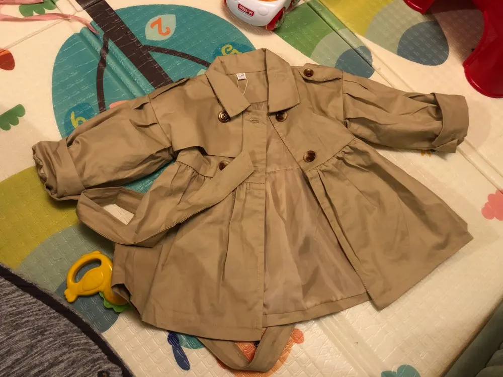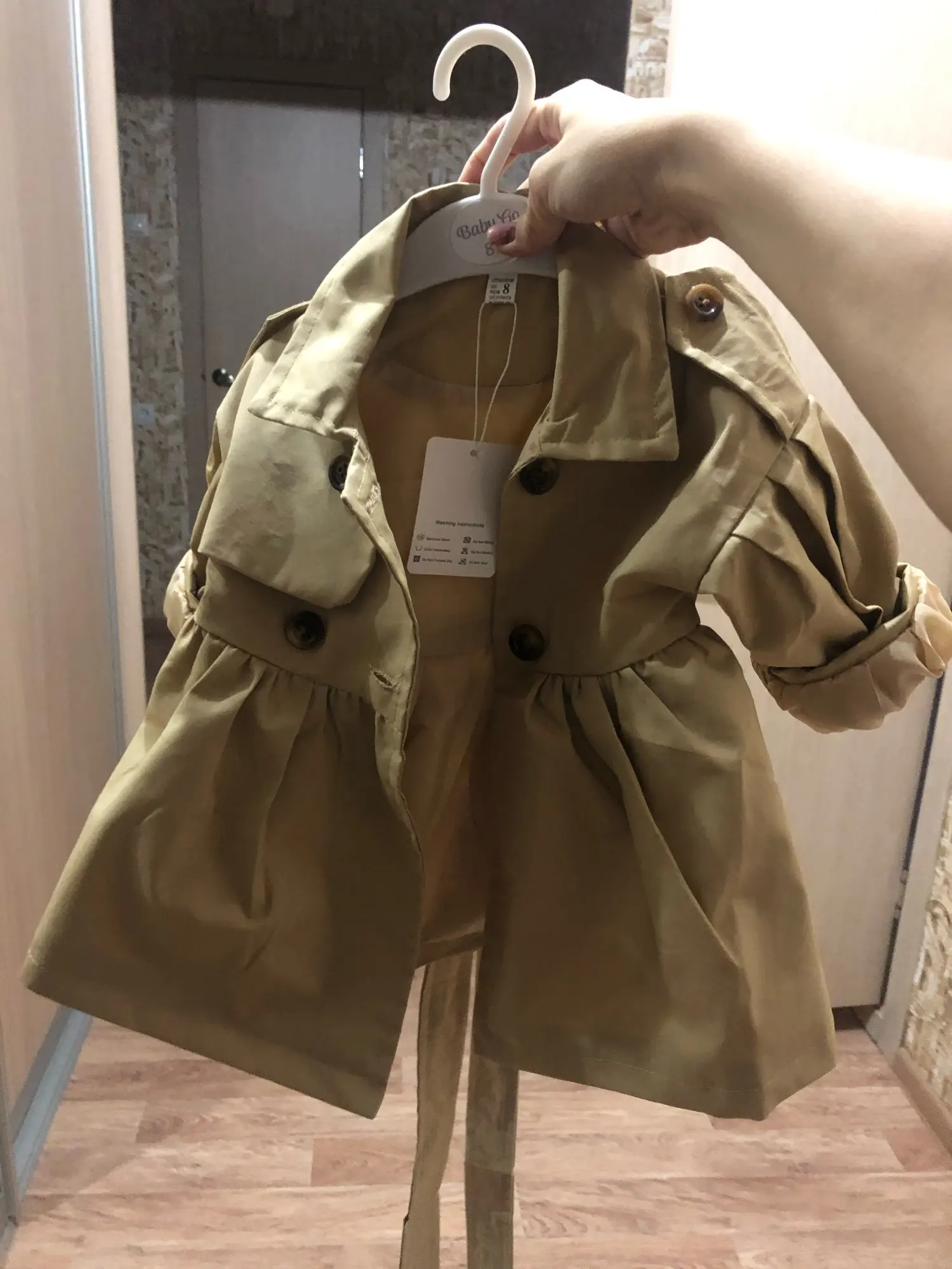 Взяла для дочки 2 лет. Носим одежду в основном 92 роста. Плащ подошёл. Рукава странные, широкие, попробую перешить пуговицы. Из минусов -ткань мнётся ( пока гладила, одновременно и мяла