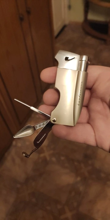 Извините, я получил зажигалку две недели или три года назад и отказался оставить оценку и, гораздо меньше, подтвердить получение. Приношу извинения продавцу. В противном случае Зажигалка является большой гранулой, имеет наличие, компактный и с хорошими материалами. Встроенный набор инструментов для труб (атакующий + Дырокол + ложка) это одна из причин, по которой Рон берет меня за покупку, вместе с выходом пламени на сторону. Очень доволен покупкой и рекомендую на 100%.