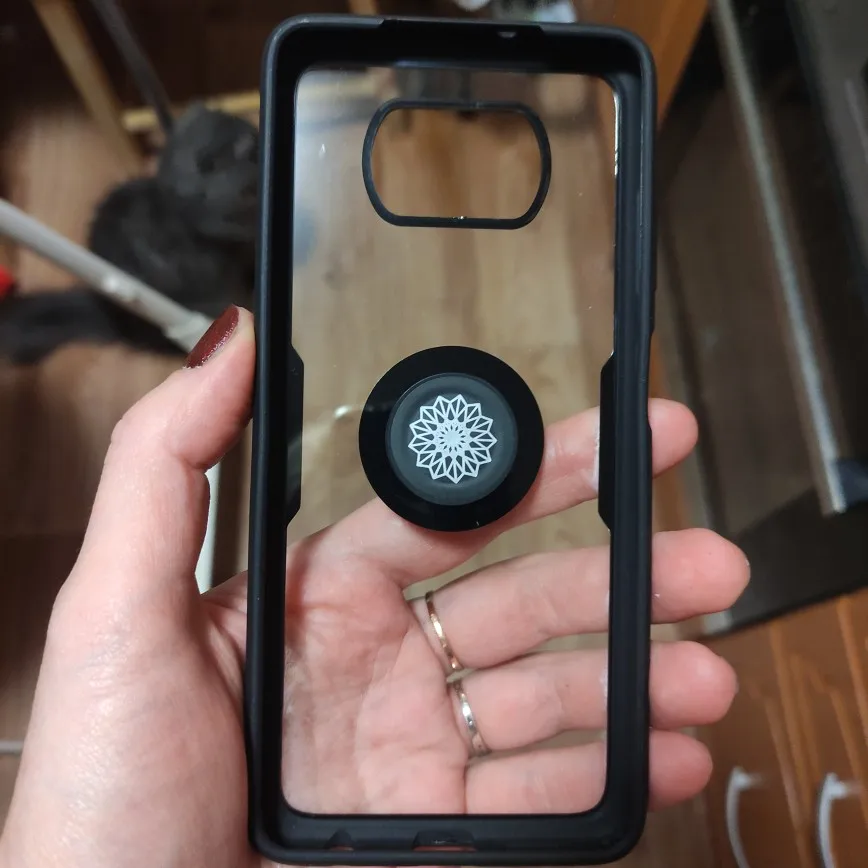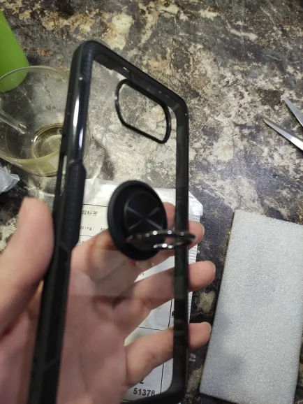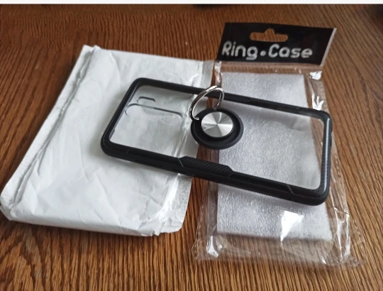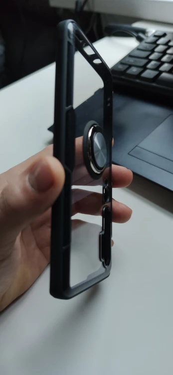 чехол пластмассовый, выглядит прикольно, торец матовый, спинка прозрачная, у кольца три положения под 90°, 180° и в собранном виде , кольцо металлическое ( магнитит ), боковые кнопки нажимаются мягко, чехол сел нормально зазоров нет, в руке держать приятно, но выскальзывает. Стоил 280 рублей. Фотографию не прикладываю он в точности как заявлено в магазине.