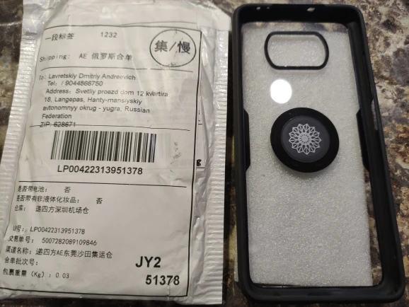 Чехол пришел, но бракованный. Основная функция чехла это кольцо, которое должно держать телефон, но не держит. Сам чехол хороший. Продавец идет на контакт, через спор вернул половину суммы, как мы и просили. За это пять звезд.