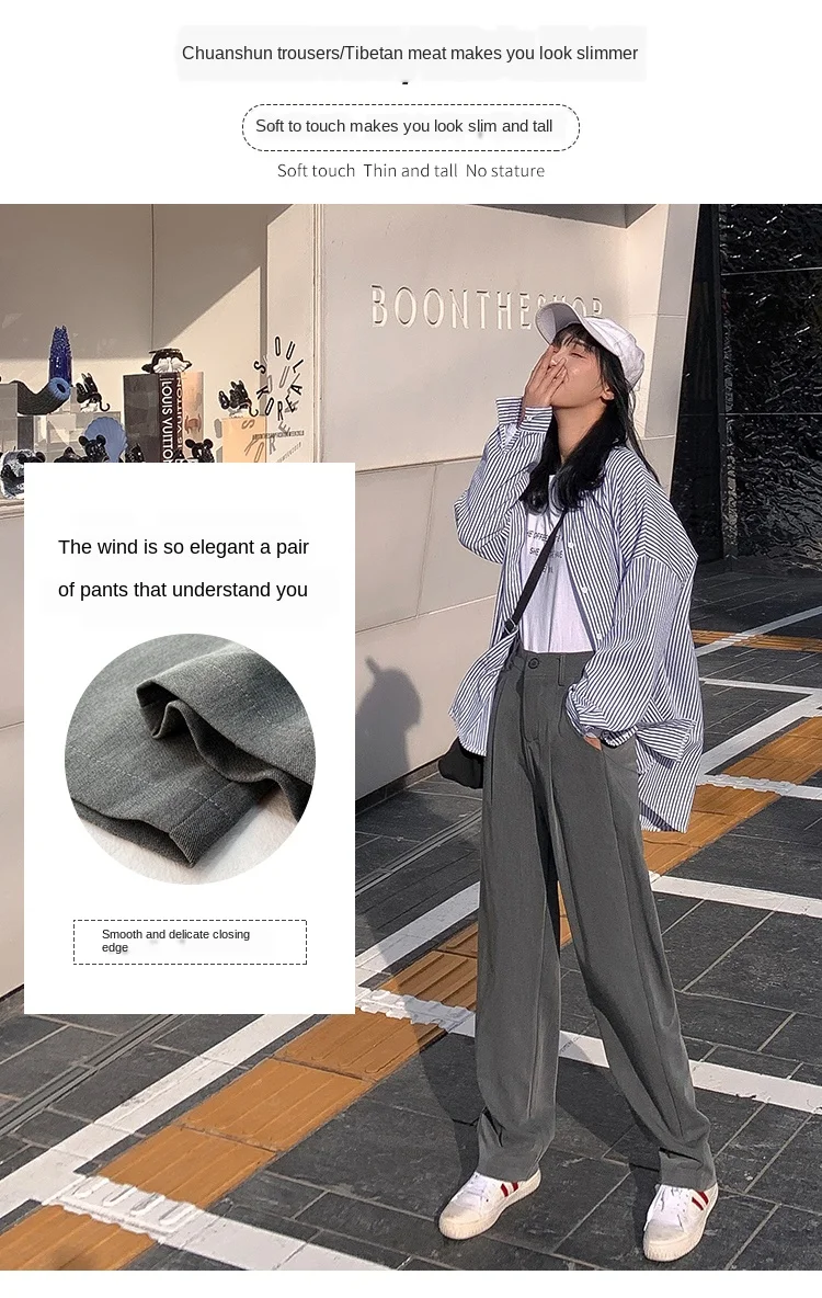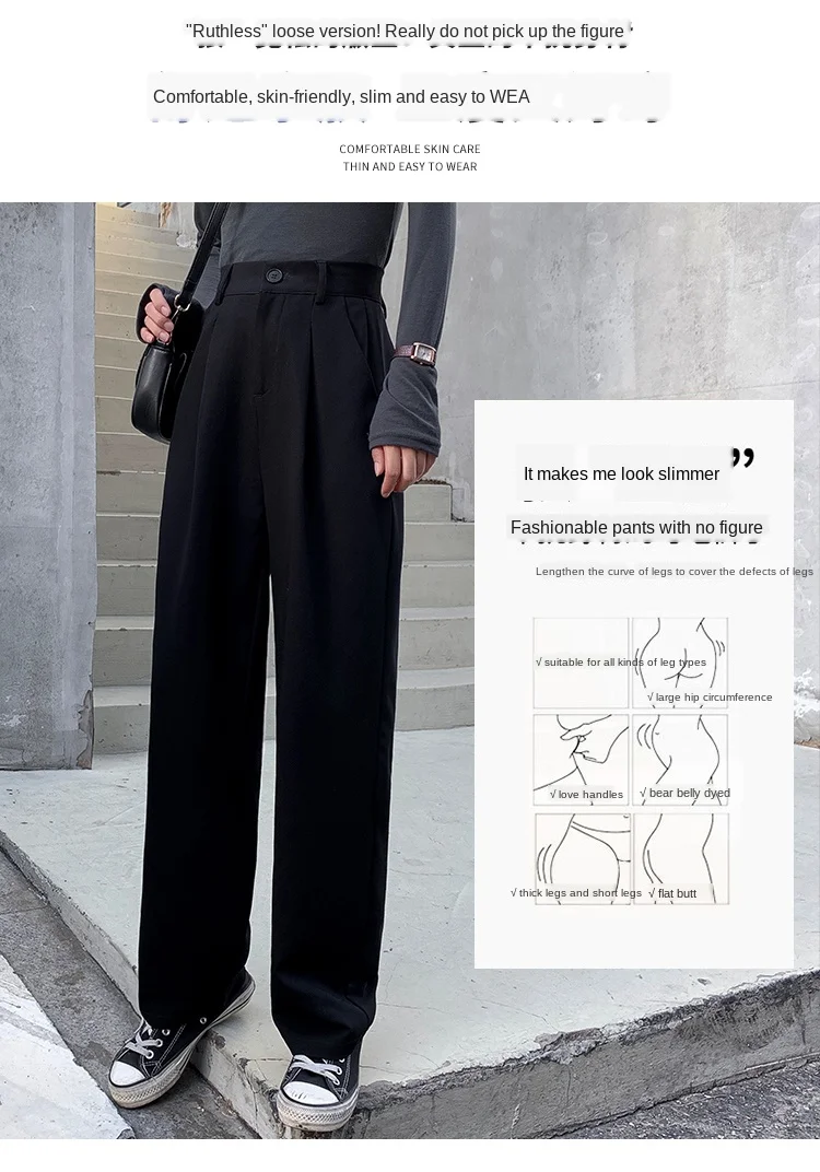 Брюки женские Костюмные с высокой талией, свободные длинные брюки, весна-осень 2022, однотонные офисные женские брюки с широкими штанинами в Корейском стиле, 107