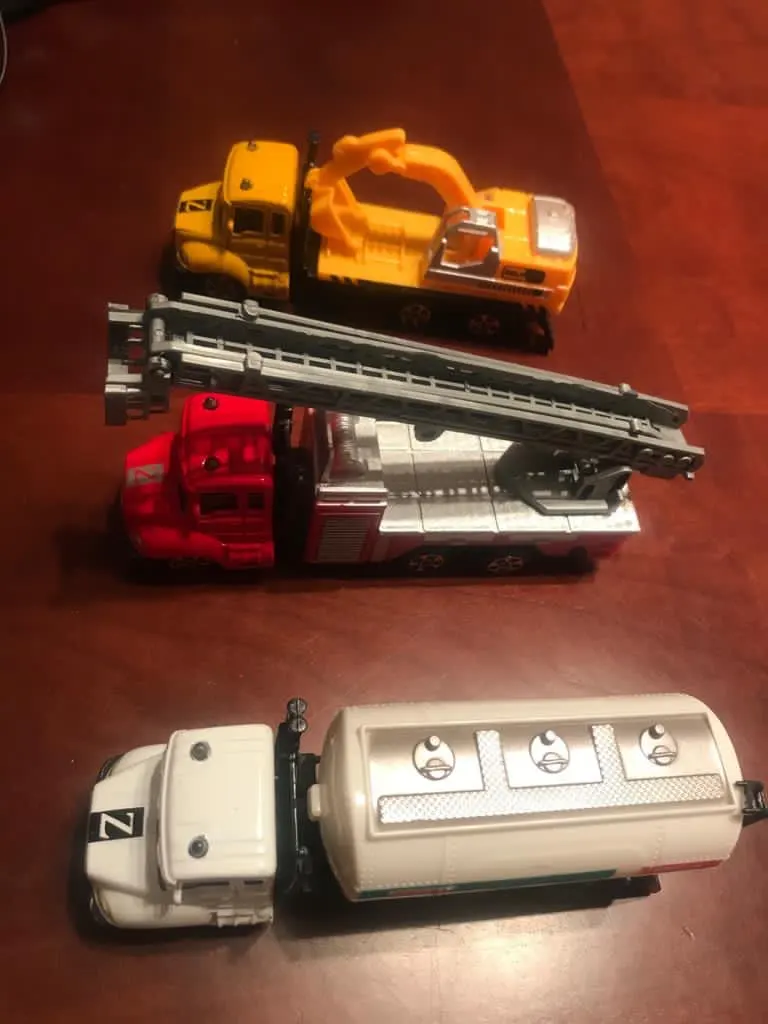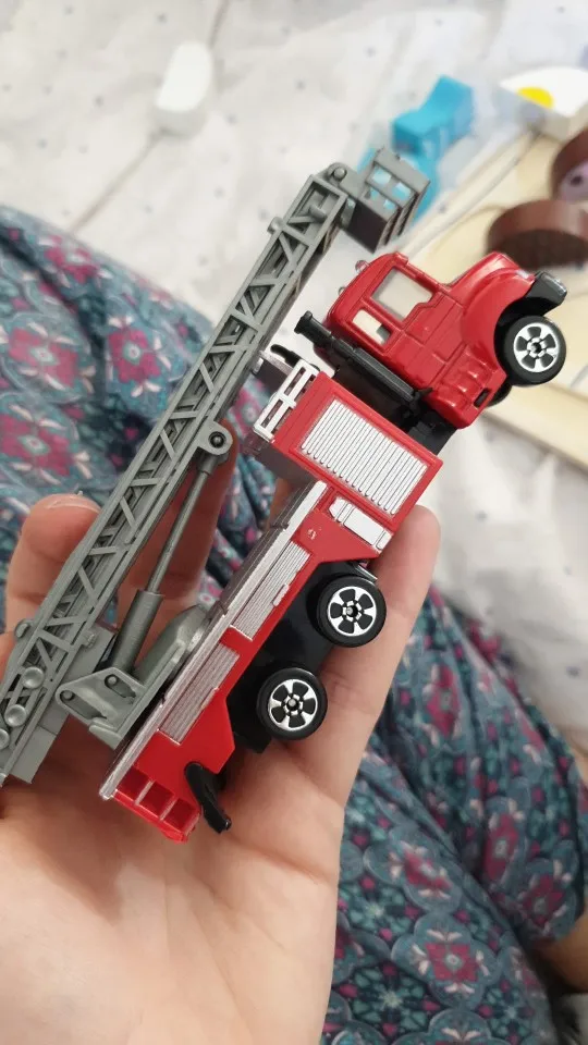 Приехали в срок. По ощущениям, как-будто металлические, но это не так. Пластмасса двух видов. В целом машинки не плохие на месяц или чуть больше хватит. Все построены на одной базе, меняется кузов. Колеса никакущие, скорее всего первыми поломаются. Они трясутся, по размеру явно меньше чем должны быть, гнутся... ну в общем колеса самое слабое звено. За ними мелкие детали лестниц или других маленьких деталей авто, которые отломаются при «изучении» машинки ребенком. Пришли без коробки, просто в пластиковой форме, которая должна размещаться в коробке. Так что подарить не выйдет.