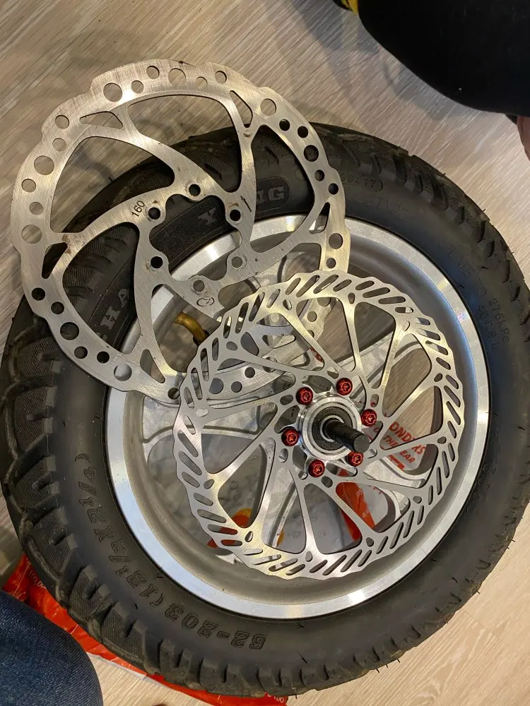 203 мм диски реально большие по сравнению с со стоковыми 160 мм, тормозят лучше, но есть одно но немного кривые! а в целом все отлично