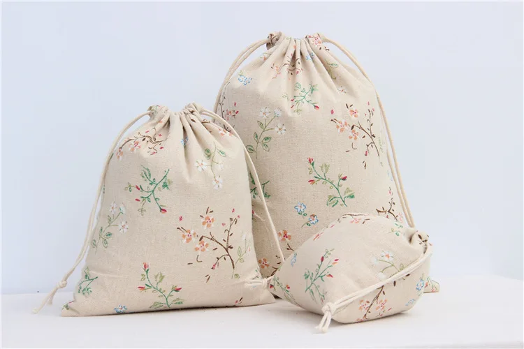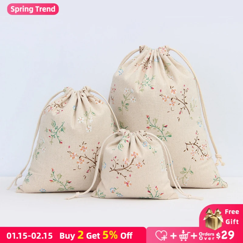 Литературная хлопково-Льняная сумка на шнурке, винтажные подарочные пакеты для конфет, цветочных растений, кофе, Женский кошелек для мелочи, дорожный мешок для хранения