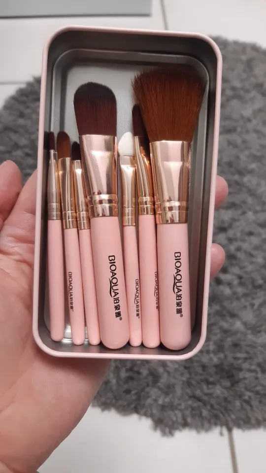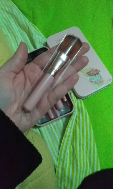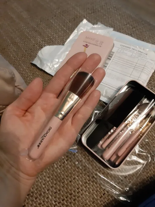 Прекрасные, милые, и компактные кисточки в милой коробочке, тем более за свою цену. Ворс не выпадает. Есть не большой запах, но думаю можно вымыть обычным мылом. Быстрая доставка. Отслеживалось до отделения почты. Рекомендую продавца.