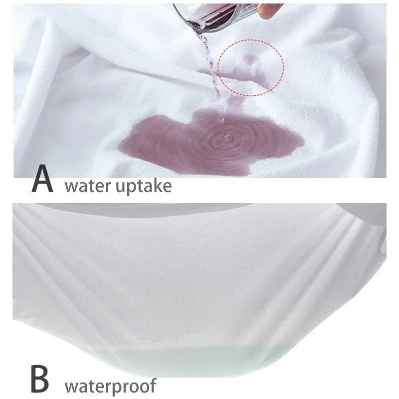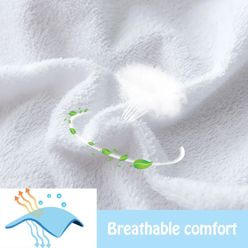 Это 60% хлопок-40% полиэстер махровая ткань смесь поверхности, которая обеспечивает комфорт и впитываемость. Он имеет специальную дышащую (полиуретановую) пленку на спине, которая позволяет теплу и влаге дышать, блокируя при этом бесmirch, жидкость, бактерии и другие гипервосприимчивые материалы от матраса кровати.