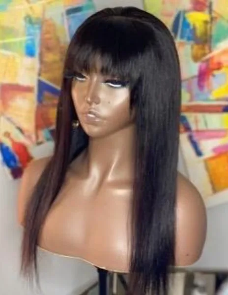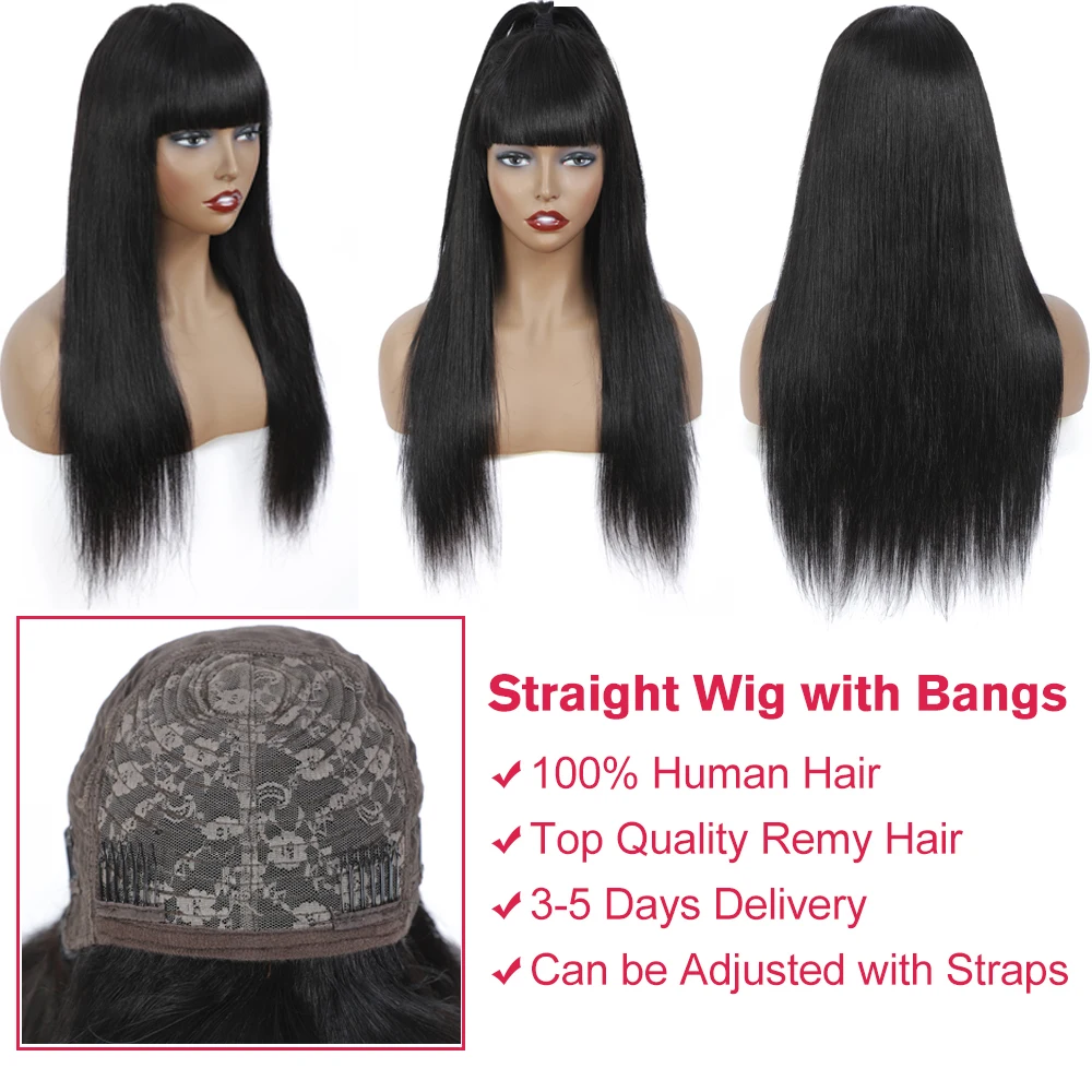 Прямые парики из человеческих волос с челкой, бразильский парик полностью машинной работы с челкой, предварительно выщипанные парики из человеческих волос Remy для женщин QUEEN