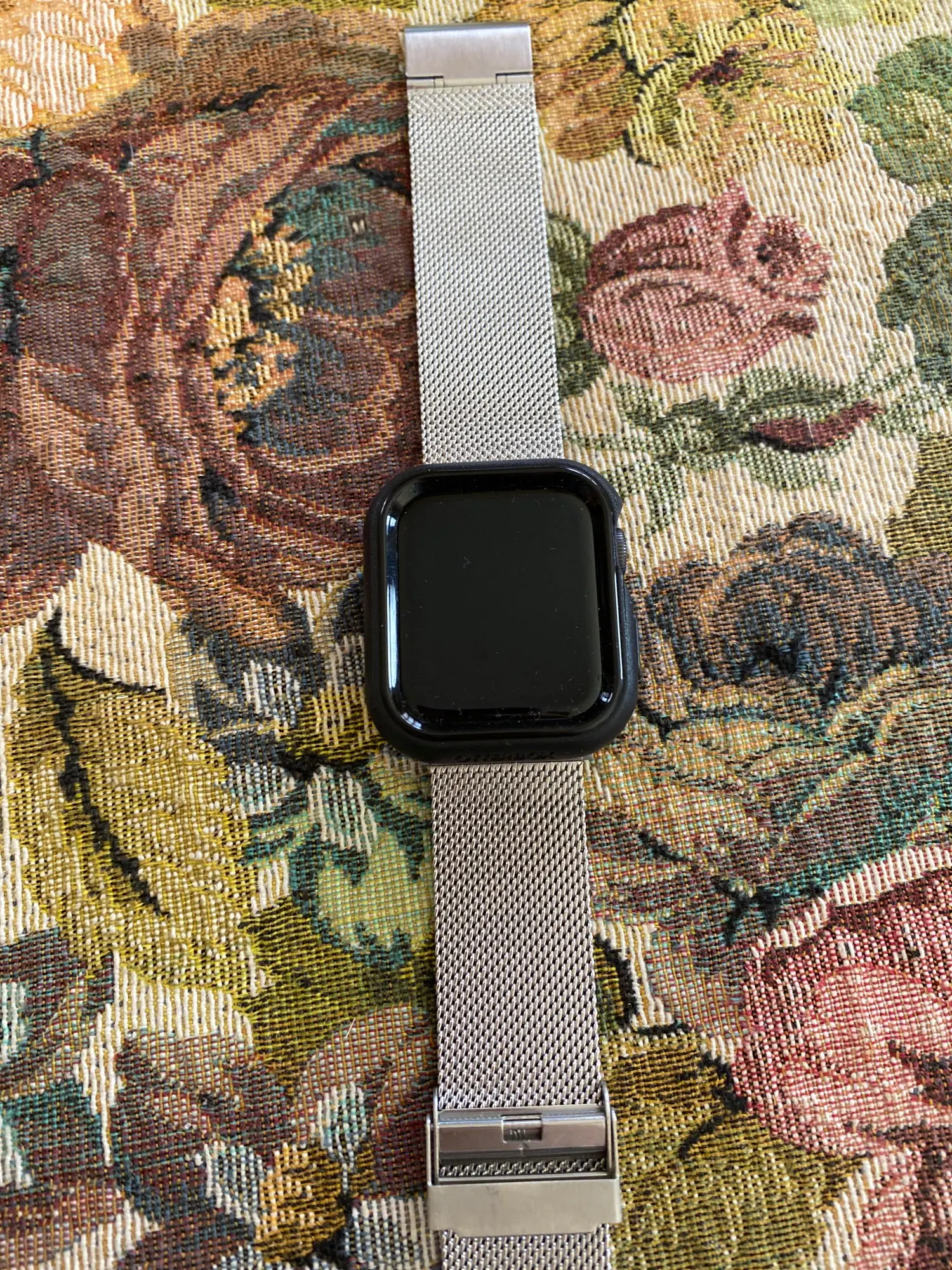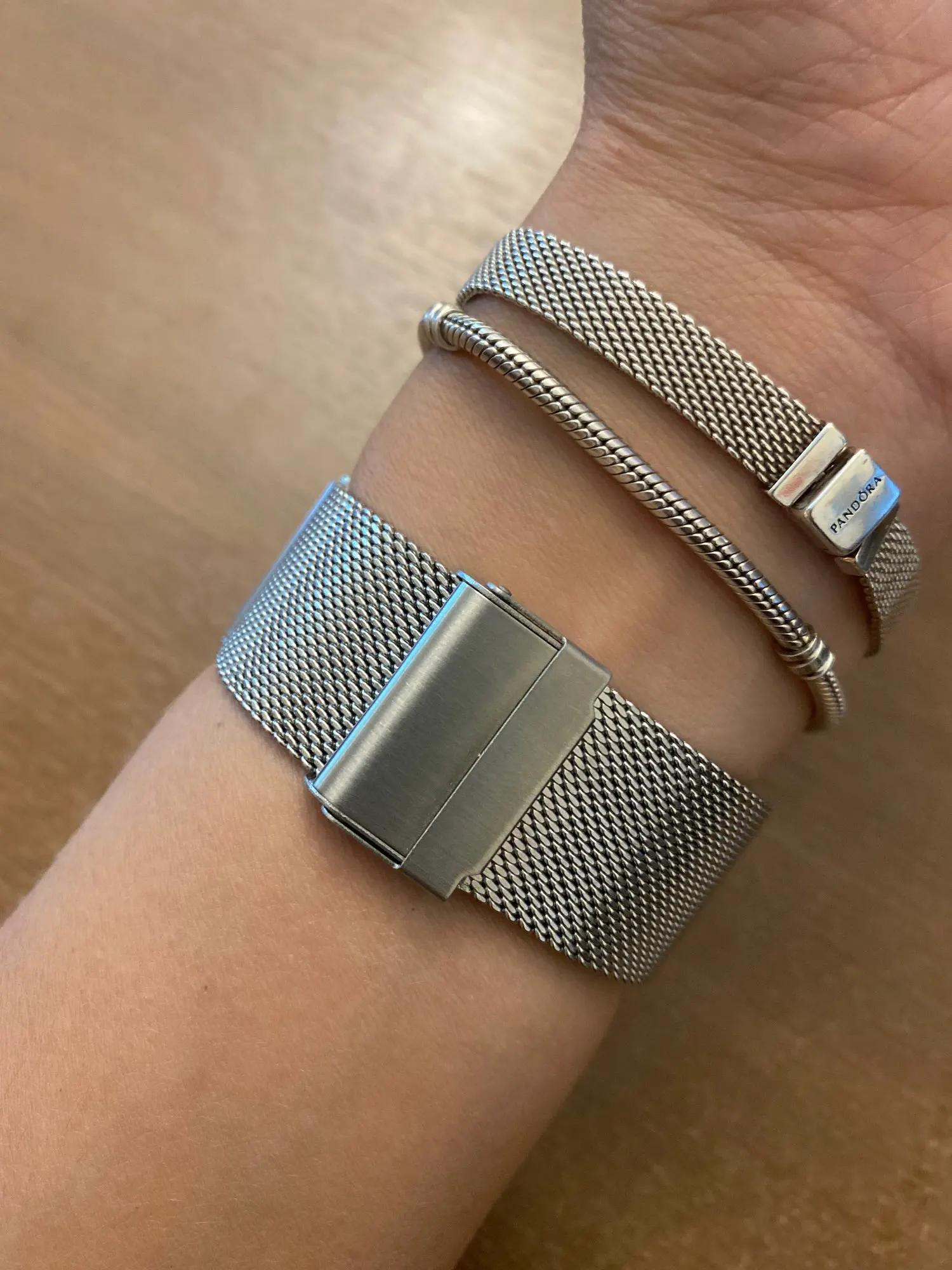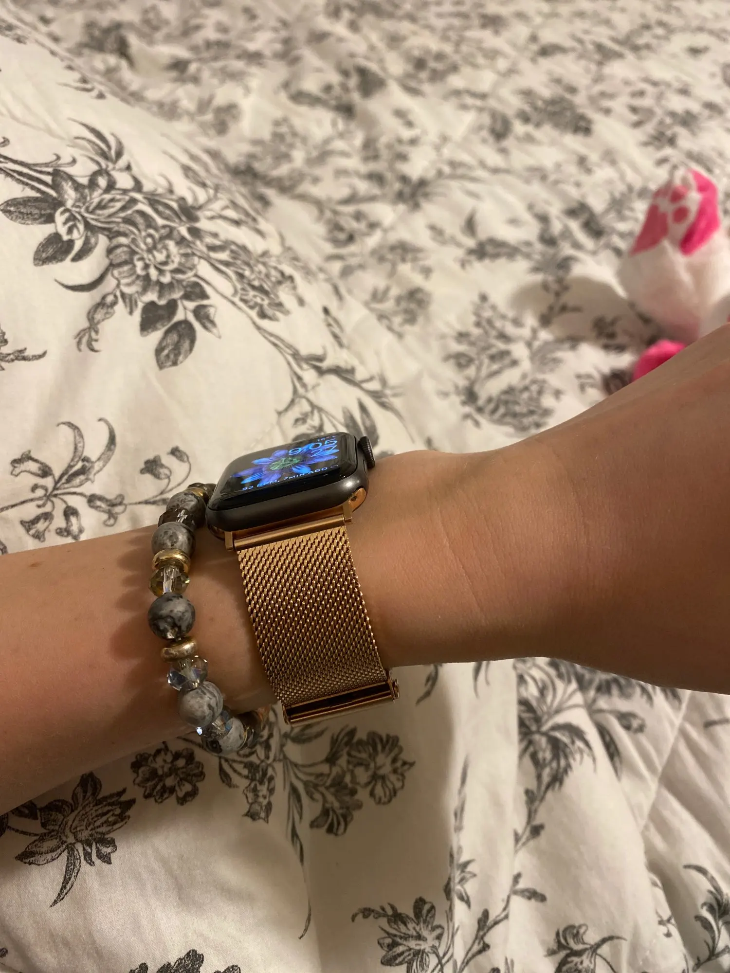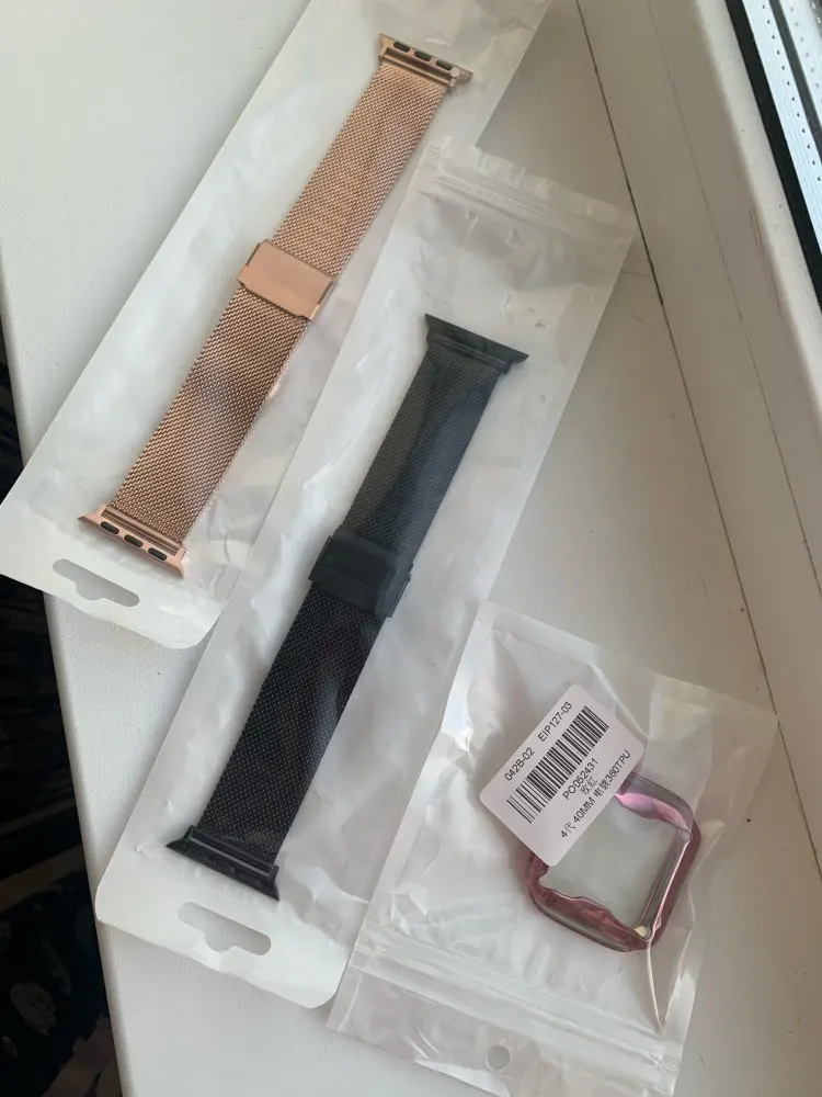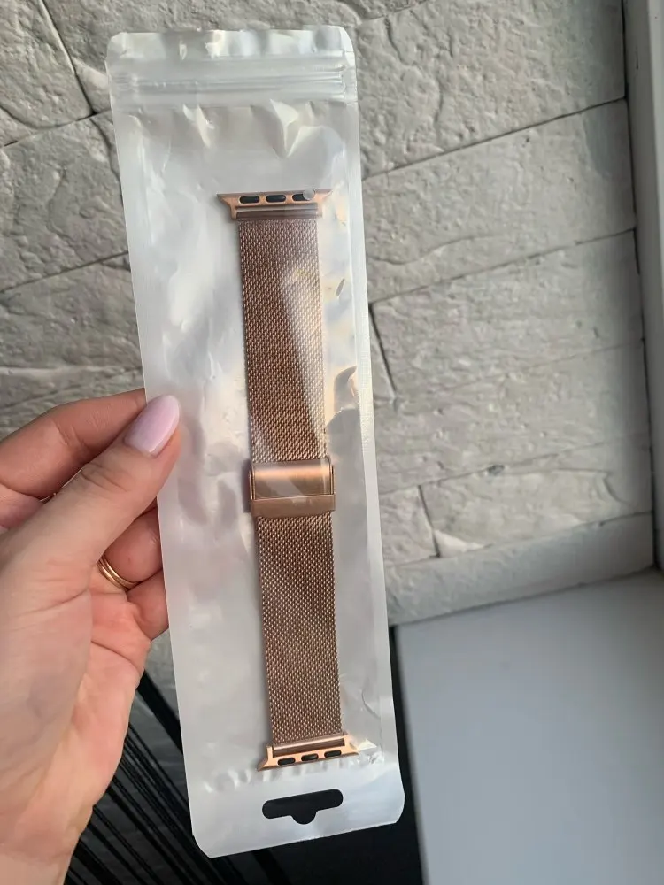 Ремешок совместим с Apple Watch. Супер удобно и свежо, отлично сочетается. Защитное закрытие, которое у него есть, идеально.