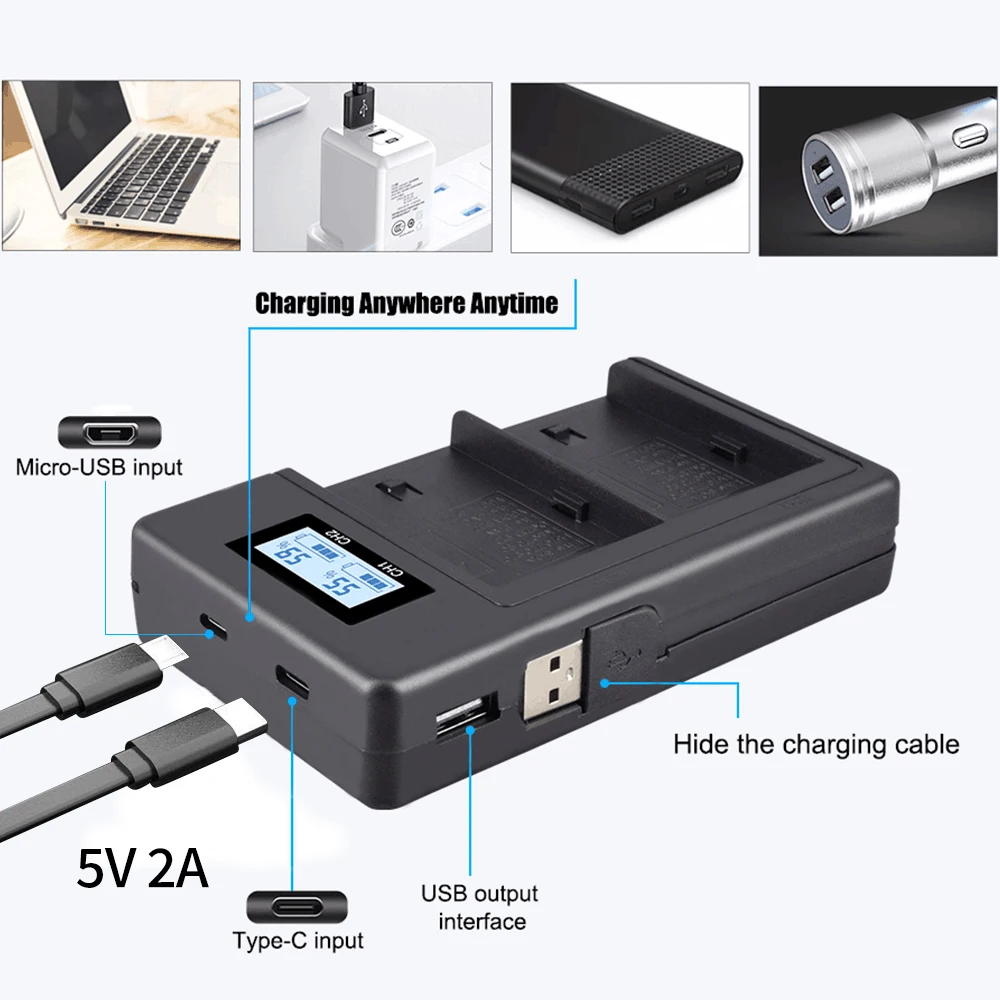1x быстрое зарядное устройство с ЖК-дисплеем