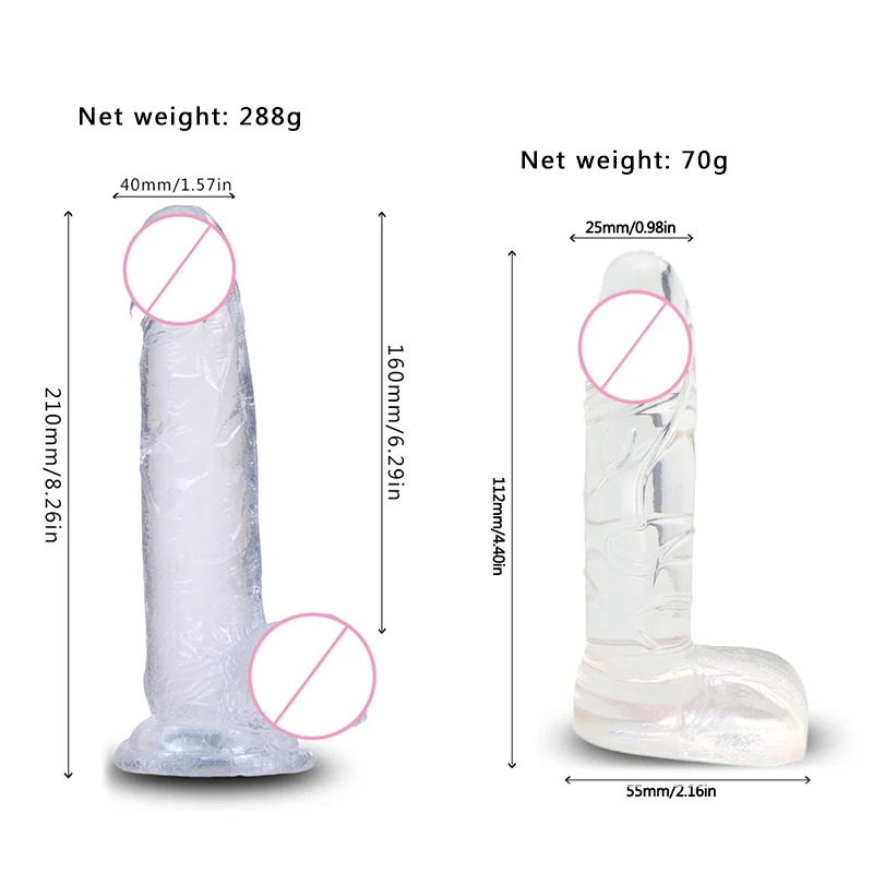 Описание1. Тип товара: Желейный фаллоимитатор, реалистичный фаллоимитатор, Хрустальный фаллоимитатор2. Размер: D019: l210мм * d40мм, 288g ; D020: l112мм * D25,70g3. Цвет: прозрачный, фиолетовый, розовый, телесный4. Вес нетто: 288 г5. Особенность: сильная присоска, Стимуляция клитора6. Функция: мужской искусственный пенис, секс-игрушки для женской мастурбации