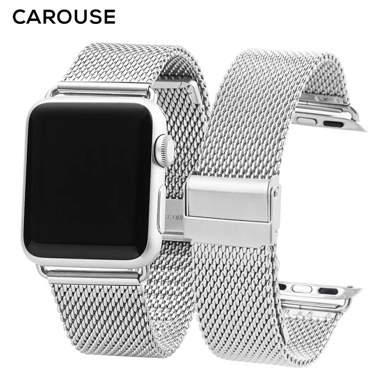 Ремешок для часов Carouse, из нержавеющей стали, Миланский, для Apple Watch, ремешок SE654321, 42 мм, 38 мм, для iWatch, металлический, 40 мм, 44 мм