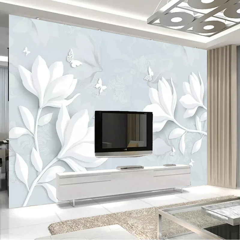 Настенная бумага любого размера на заказ, современная простая белая рельефная бабочка магнолии, фотообои для гостиной, спальни, 3D Декор для дома
