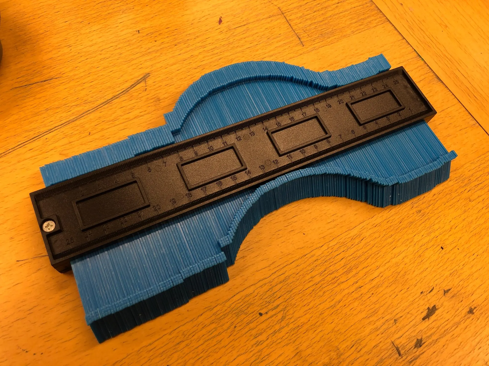 Манометр прибыл всего за 5 дней в идеальном состоянии. Хороший и большой. Сначала довольно жесткая, но она стала менее жесткой, так как я работал вперед и назад. По-прежнему требуется некоторое манипулирование пальцами, чтобы выровнять все зубцы по нужному контуру, вы не можете просто надавить на предмет и получить идеально дублированный край, но это делает работу. Края углы. Цвет яркий. Цифры лучше видеть при слабом освещении или с старыми глазами, но легко фиксируется с помощью небольшой краски. Хорошо для среднего пользователя, не для профессионального, может быть? Спасибо продавцу за хороший и полезный продукт. # Инструмент # инструменты # контур # Деревообработка