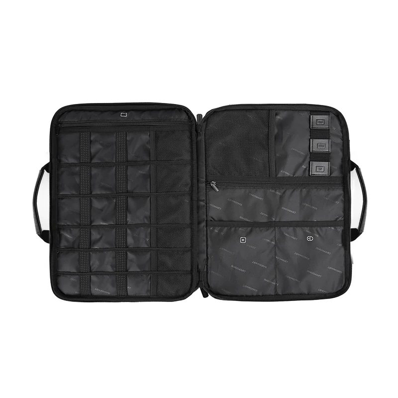 Чехол не будет торчать, даже если вы положите мышь, адаптер, зарядное устройство и банк питания вместе. Гарантированно, что устройства, которые вы хотите использовать, всегда под рукой.