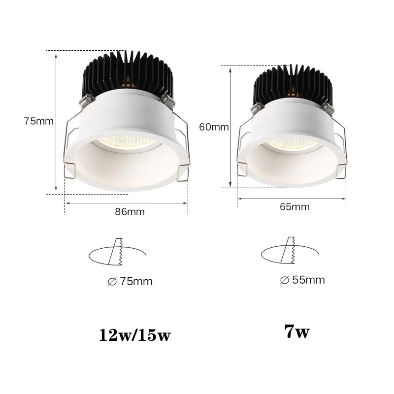 12 Вт 15 ВтH75 * d85 мм открытое отверстие 75-80 мм