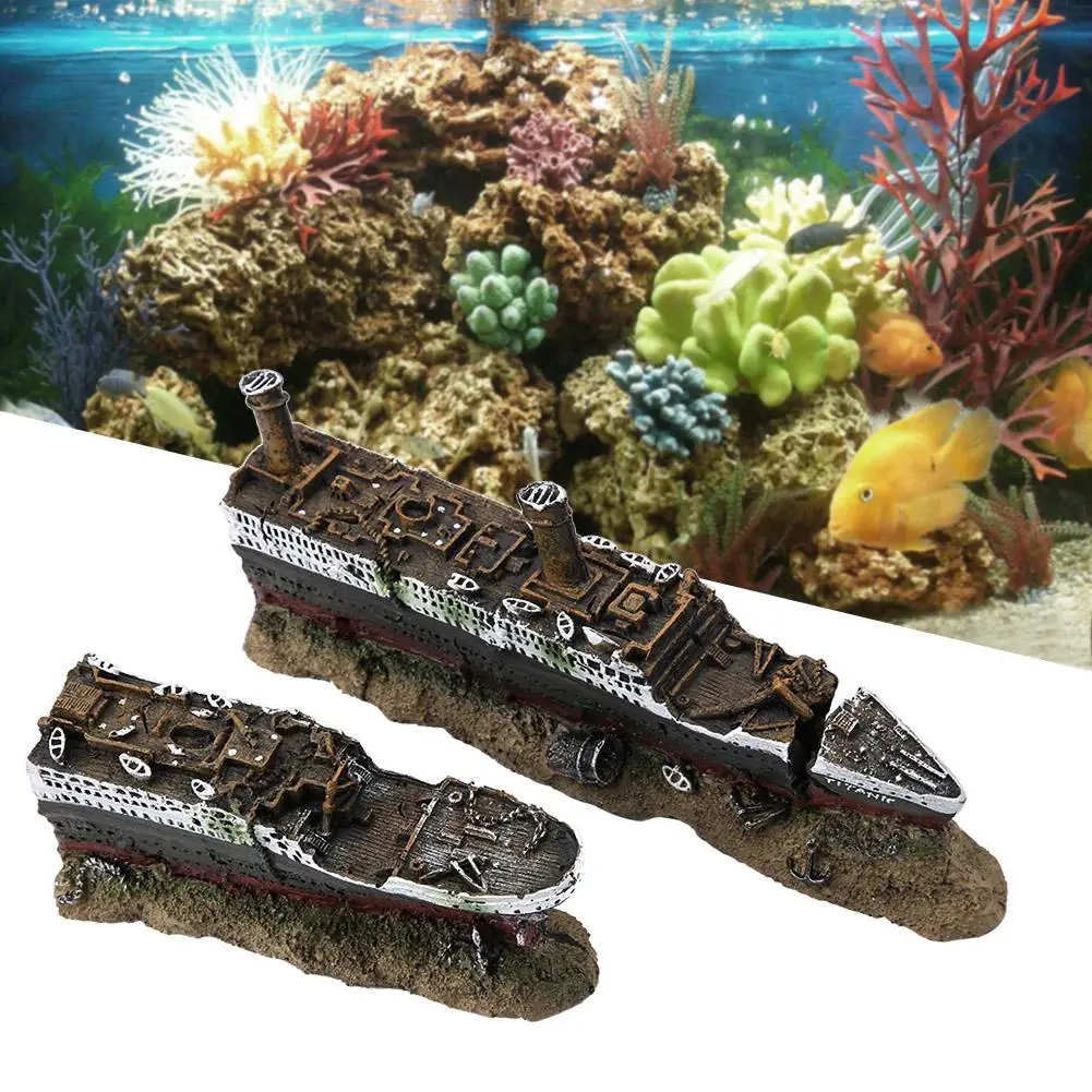 Аквариумный аквариум из полирезины титановая лодка кораблекрушение орнамент аквариум для рыб домашнее животное подводный Декор Декорации для просмотраОни абсолютно безопасны для рыб, и лучше всего, они не будут гибнуть, гнить или вызвать какие-либо проблемы с водорослями. Предлагает естественное ощущение окружающей среды. Превратите свой аквариум в красивый пейзаж. Конструкция корабля может быть разделена, чтобы облегчить прохождение рыбы и креветок, чтобы создать красивый подводный мир.