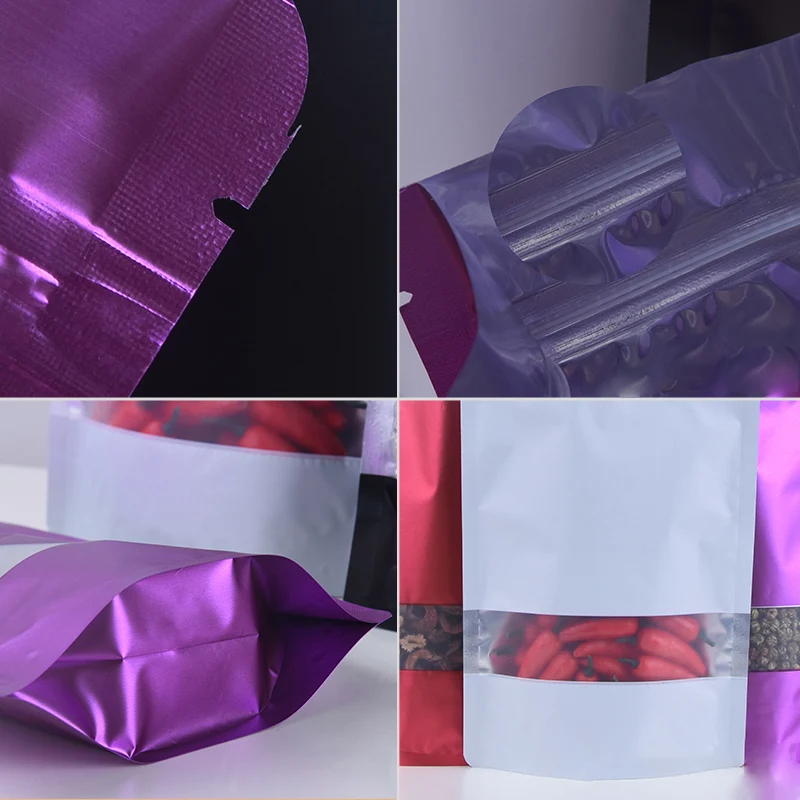 Толстая цветная алюминиевая фольга на молнии, самонесущий упаковочный пакет, пищевая гайка, дисплей для супермаркета, оконная упаковка для закусок, пакет для шоу, герметичный пакет