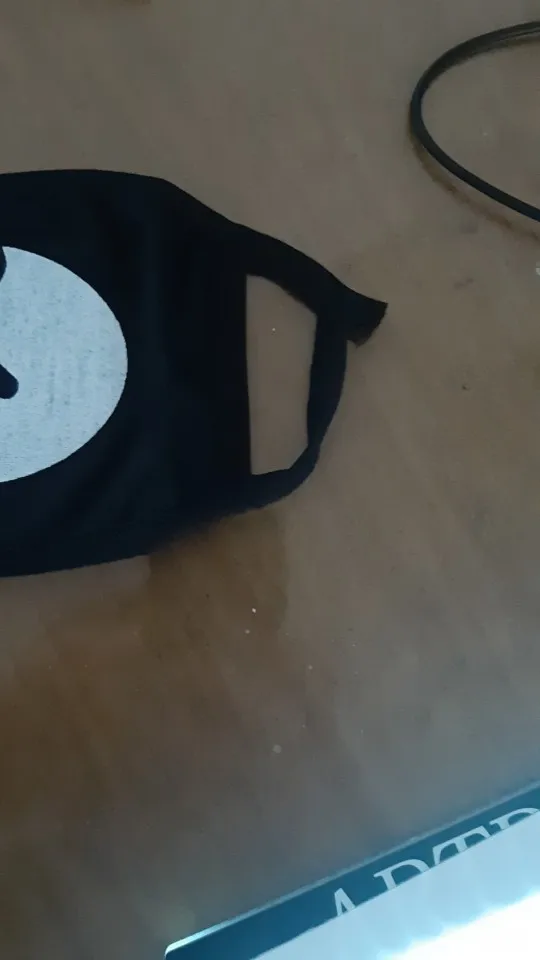 Маска вышла развязанной и логотип вверх ногами, как показано на фото