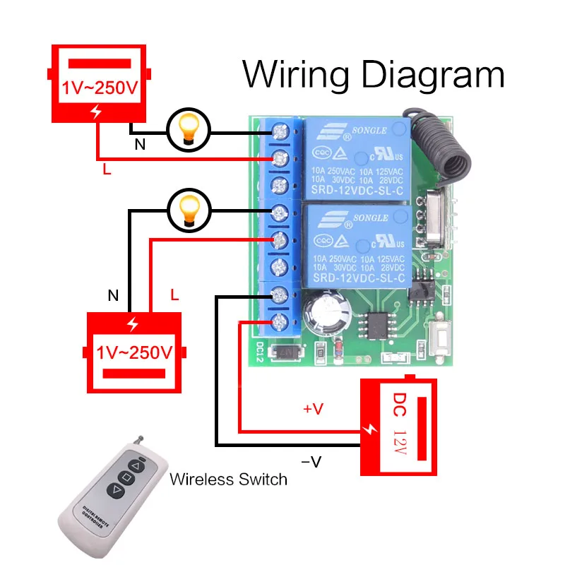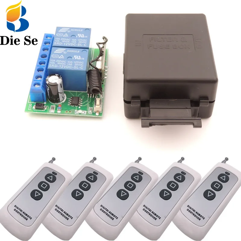 Универсальный пульт дистанционного управления, 433 МГц, 12 В постоянного тока, 10 А, 2-канальный релейный приемник и передатчик 500 м для гаража и открывателя двигателя