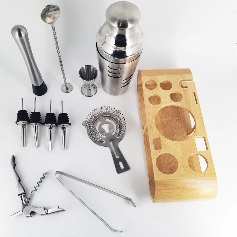 Барный набор бармена с бамбуковой подставкой, миксер для приготовления коктейлей в Бостонском стиле, 1-12 шт.