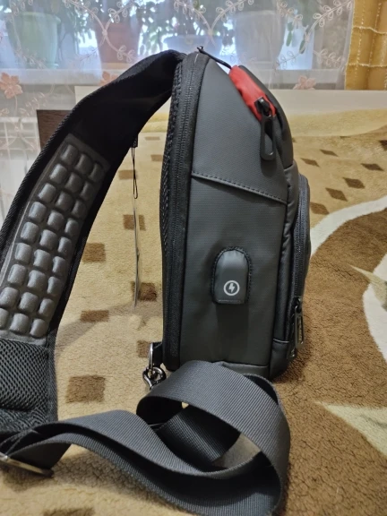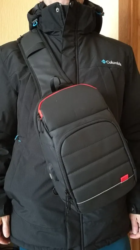Соответсвует описанию, множество карманов, меня всем устраивает. Носить через плечо не очень удобно, рассчитан на ношение как в описании. Планшет 9,7 дюйма влезает с трудом. Продавца рекомендую, Доставка 3 дня в Ленобласть.