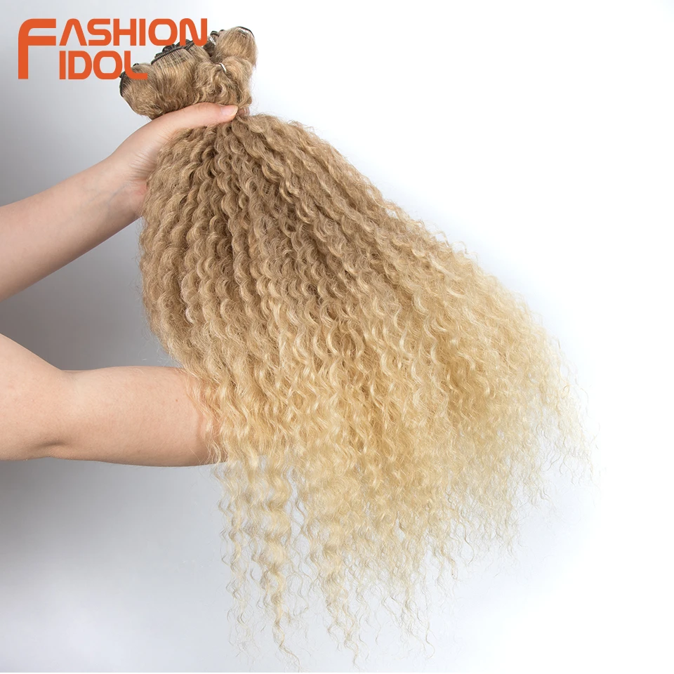 Пупряди афро кудрявых волос FASHION IDOL 5 шт.упак. 24 дюйма Блонд натуральный черный цвет синтетические волосы волнистые пупряди волокна