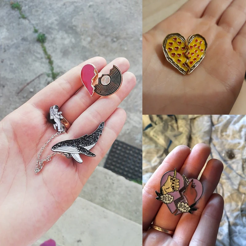 2 шт.компл. эмалированные булавки в форме разбитого сердца, креатив...