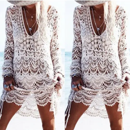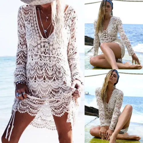 Сексуальные женские хиппи кружева крючком бикини накидка купальник ...