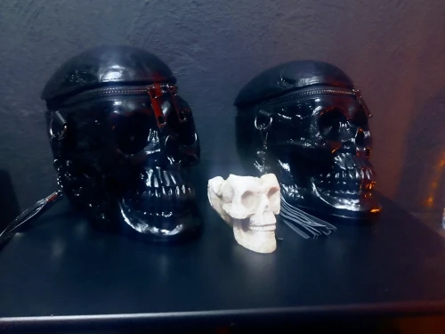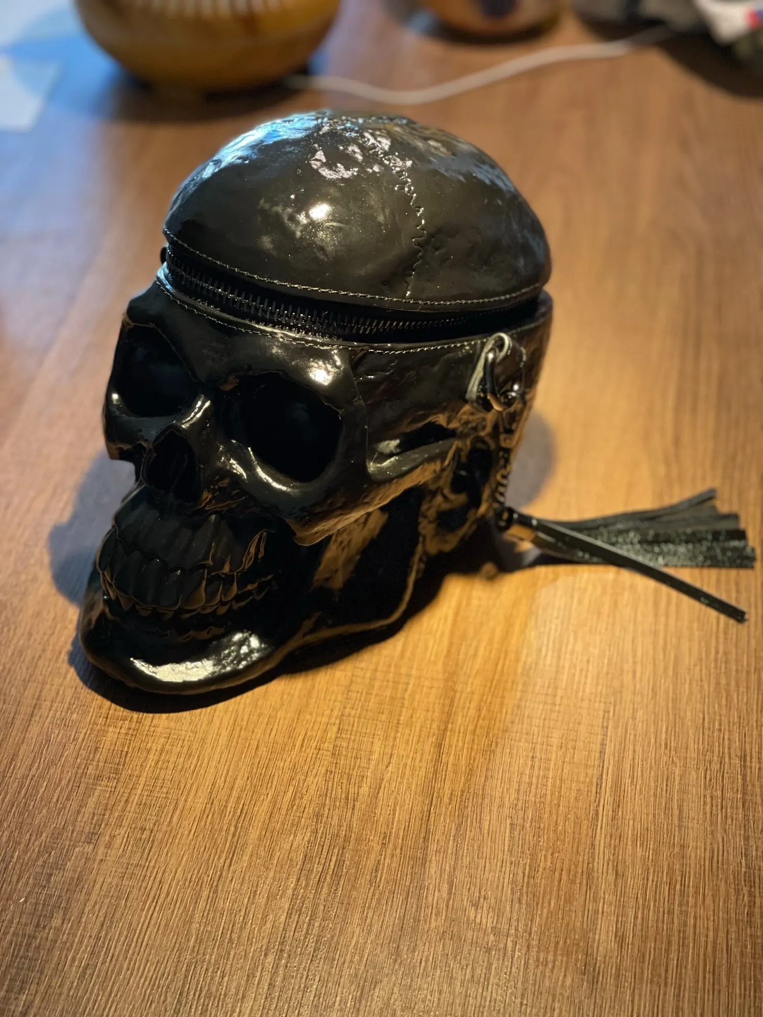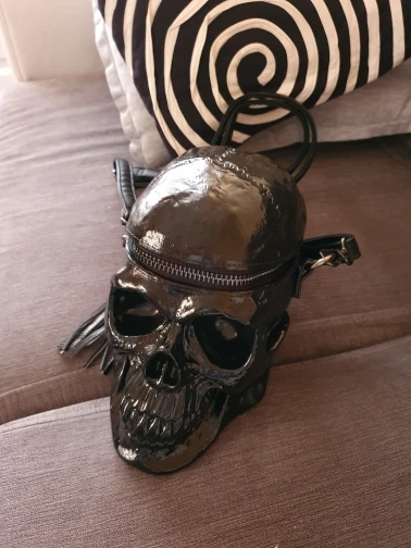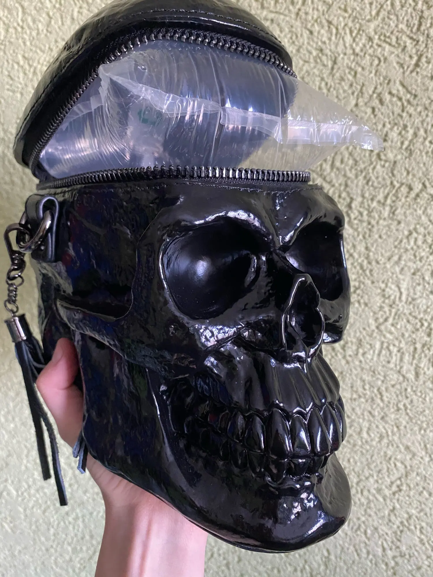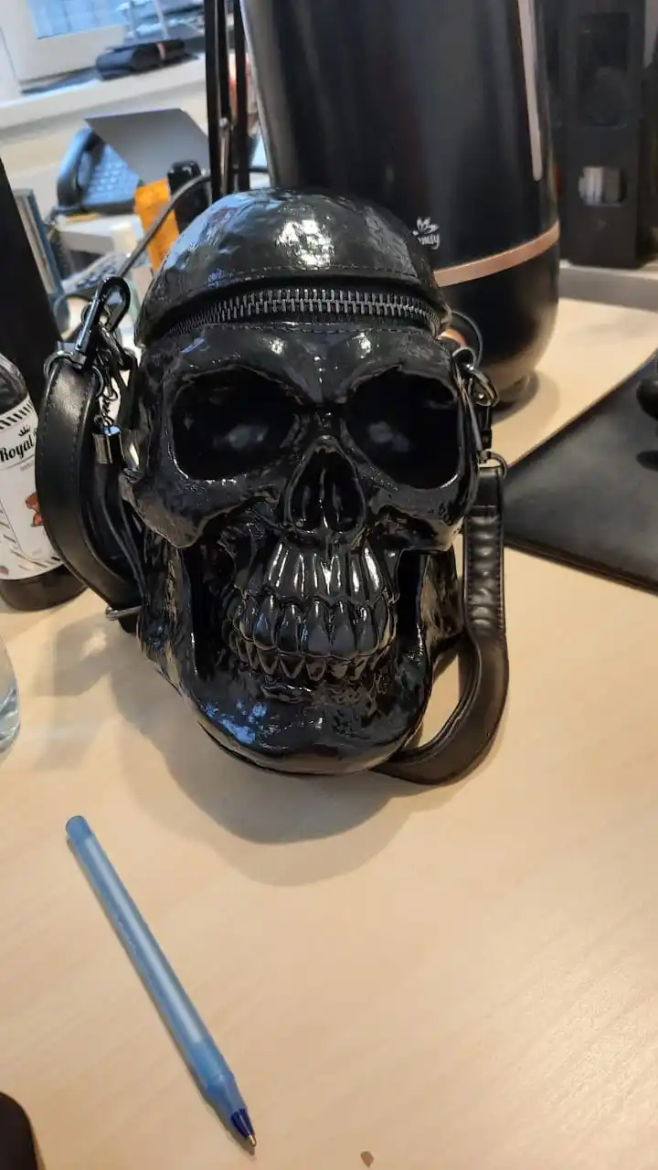 Суперский черепок, давно его хотела. Назову Йориком))). Точно как на фото, надежно упакован и быстро доставлен. По вместительности подходит для ключей и телефонов, большой кошелек не влазит. Маме не понравился, но я в диком восторге, рекомендую!