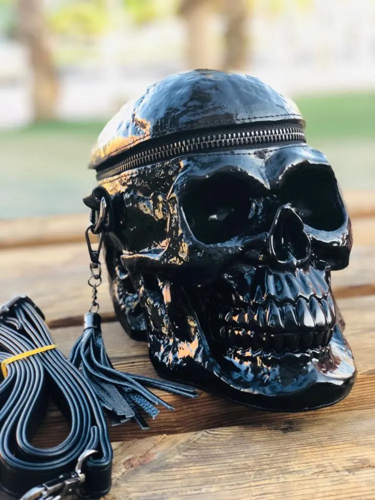 Оригинальная женская сумка, забавная черная сумка ручной работы с изображением скелета, модная дизайнерская сумка, сумка с черепом