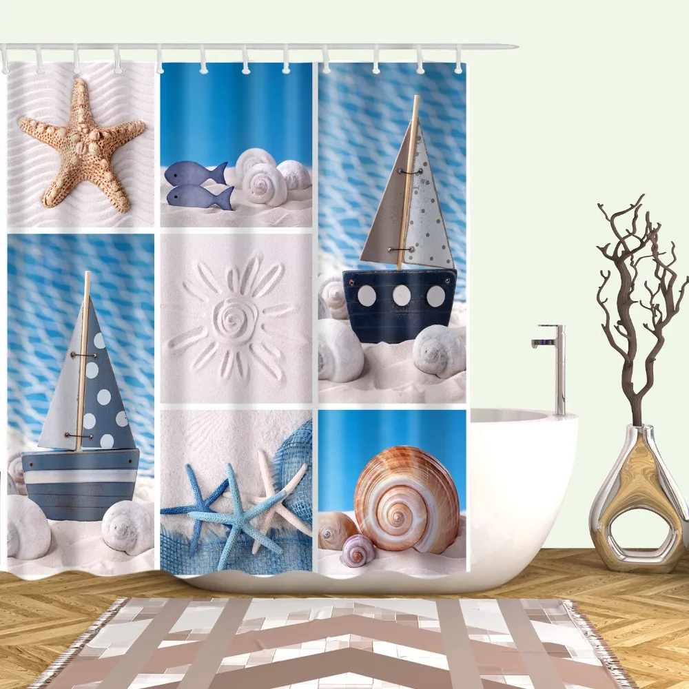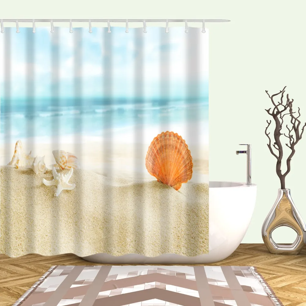 Морская, праздничная, Пляжная ракушка, занавеска для душа, занавеска для ванной, водонепроницаемая, непромокаемая, занавеска для ванны из полиэстера с крючком