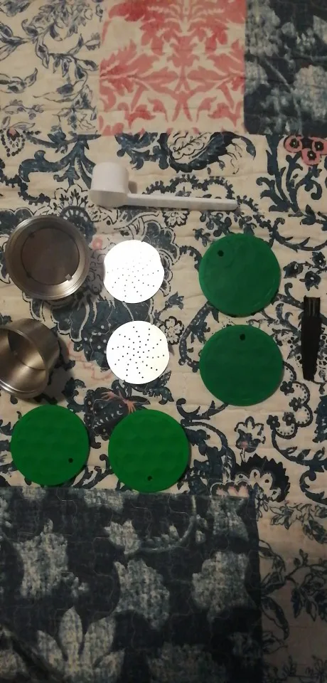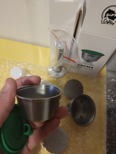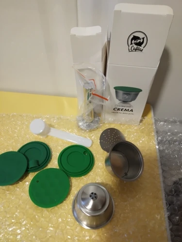 Заказ был отправлен и доставлен быстро. Капсулы сделаны добротно из нержавеющей стали. Крышки капсул из плотного материала,похожего на силикон. "Tamper" очень удобный, позволяет уплотнить кофе одним движением.
