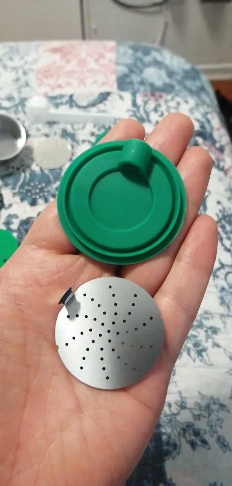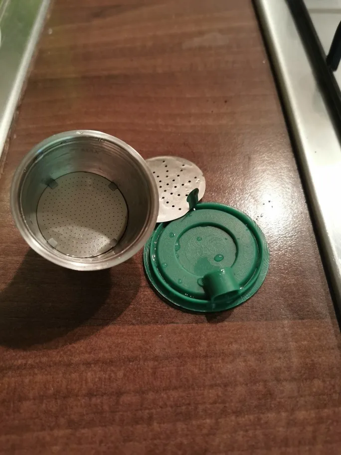 Полный отзыв с "ответом" может быть виден только через браузер. Я часто что-то покупаю в этом магазине. У меня уже было 4 такие капсулы, купленные в других магазинах во время акций: 1 выиграл за монеты, 2 в Лови момент по $1,6 и ещё 1 купил с большим купоном продавца за $4,2 (с учётом красного купона). У меня появилось желание полностью перейти на металлические капсулы, поэтому я договорился с продавцом о цене и заказал здесь ещё 5 капсул. Доставка в Москву 2 недели. Я уже пробовал несколько видов капсул. Пластиковые с сеткой-фильтром: $1 за штуку (без красного купона), я приготовил несколько кружек кофе и больше не пользовался ими; по-моему сетка имеет слишком большие отверстия, поэтому там не создаётся достаточного давления, кофе легко просачивается, а если сильнее уменьшить помол, то просачиваться будет и сам порошок.