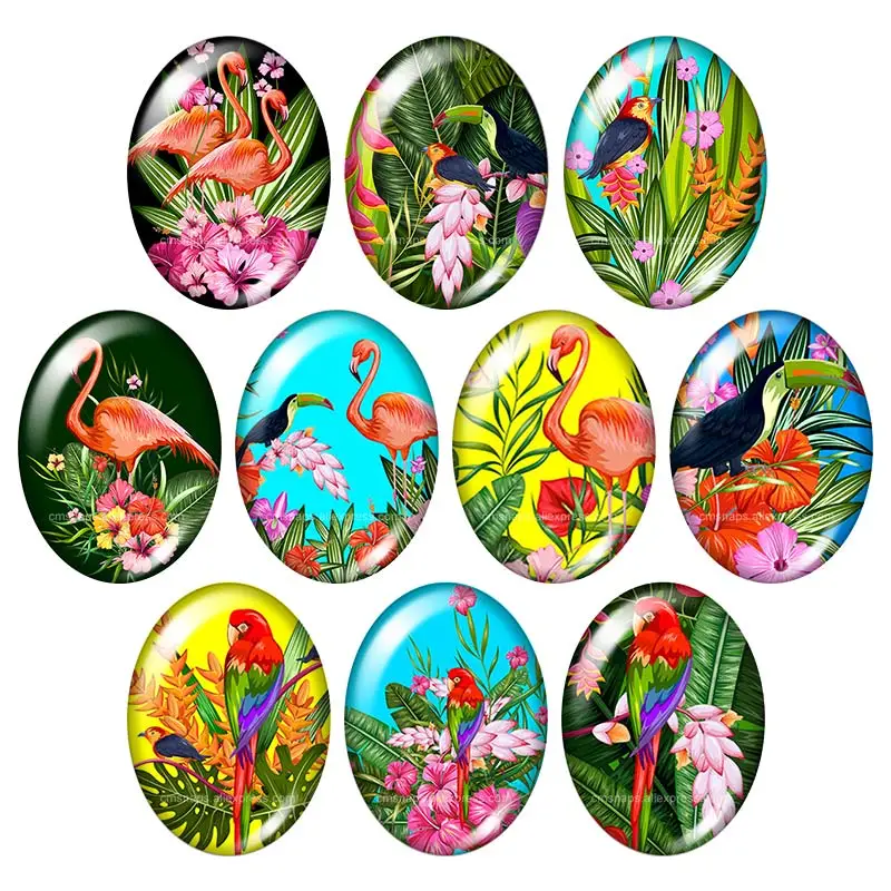 Красота Фламинго Павлин Птицы 13x1 8 мм18x2 5 мм30x40 мм смешанный Овальный фото стекло кабошон демонстрация плоская задняя Ювелирная фурнитура