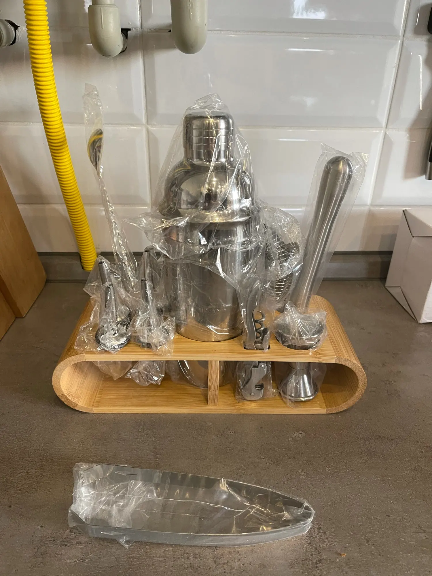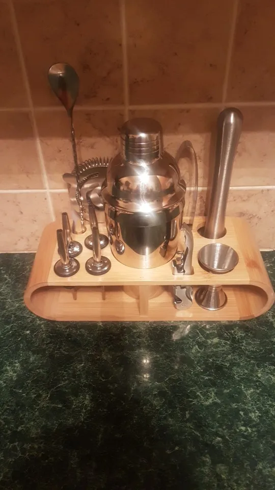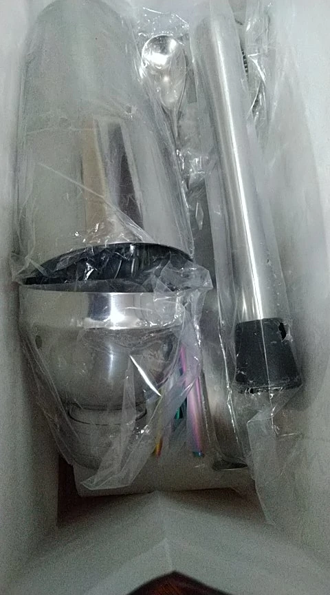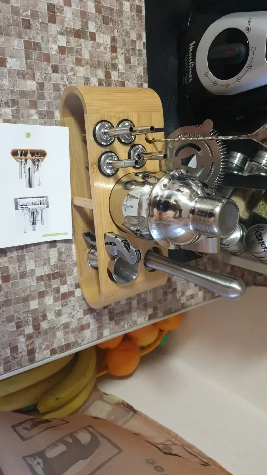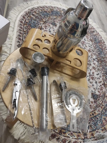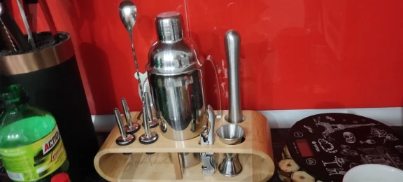 Из того, что есть в наборе, оценку - хорошо могу поставить только подставке, шейкеру, гейзерам ну и мадлеру. Ложечка очень тонкая, но есть пятка для слоев. Стрейнер не качественный и не влезает в шейкер.