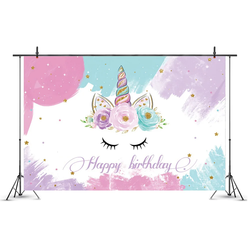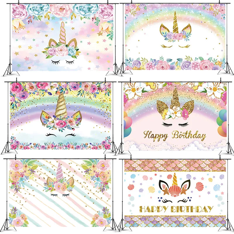 Единорог волшебный день рождения Декорации фон с днем рождения украшения для детей Детские принадлежности для душа
