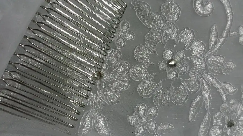Шикарная фата! Мне очень понравилась. Гребень металлический , прям как на заколках хороших) Но гребень пришлось снять, прическа не позволила. Описанию соответствует. Пришла фата быстро и в срок. Рекомендую!!!