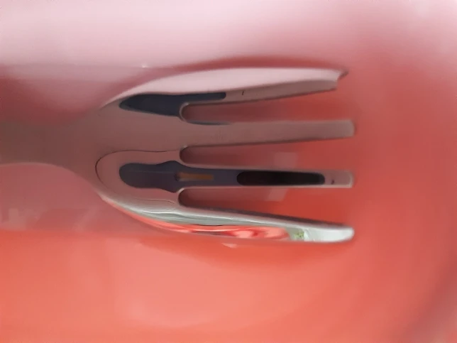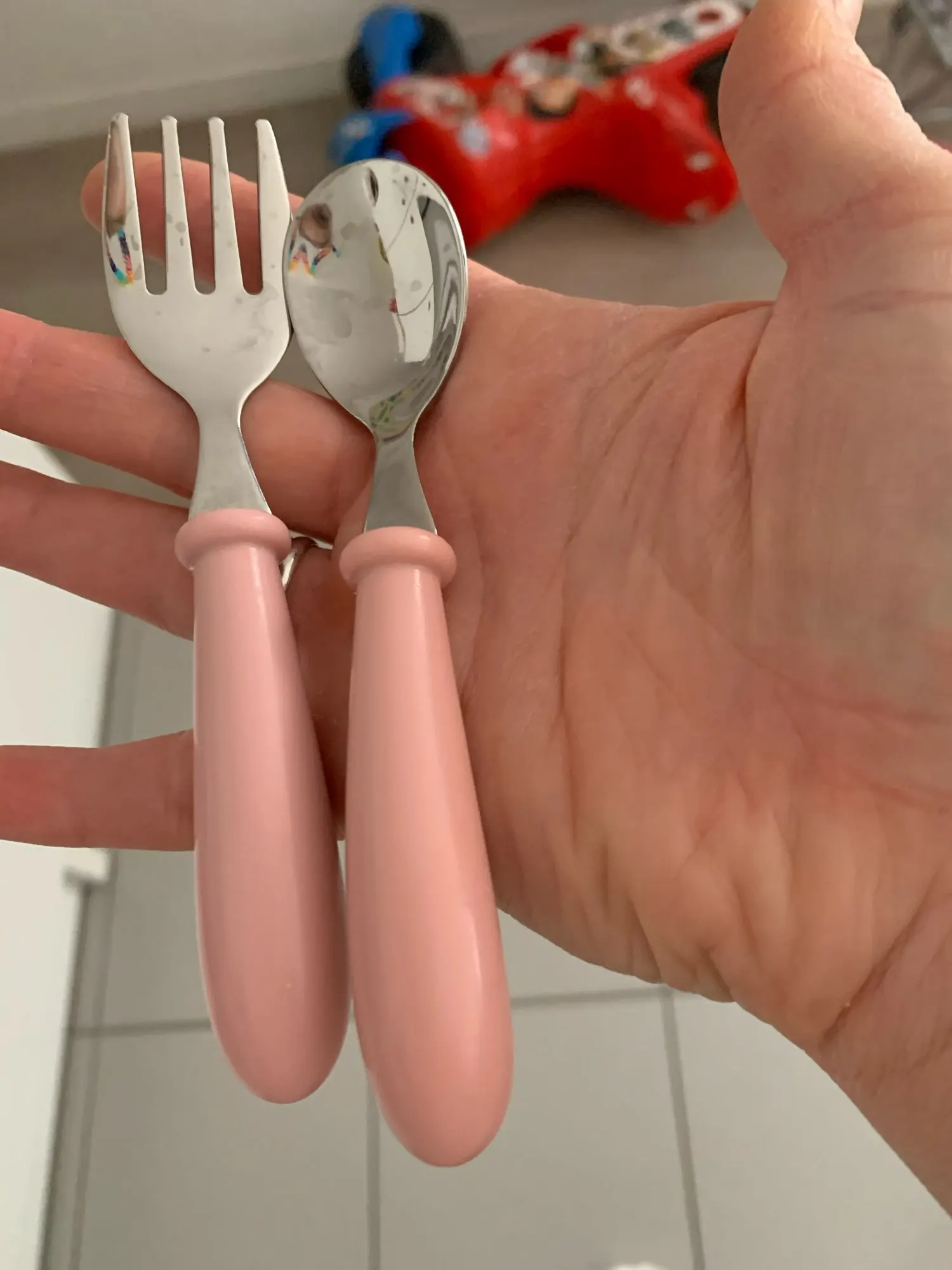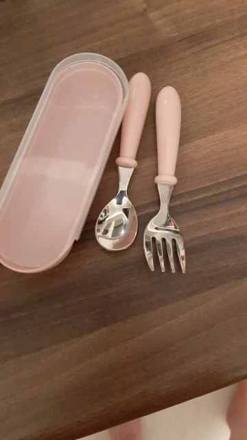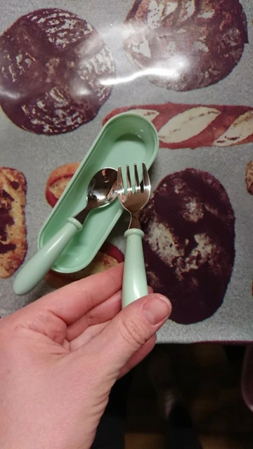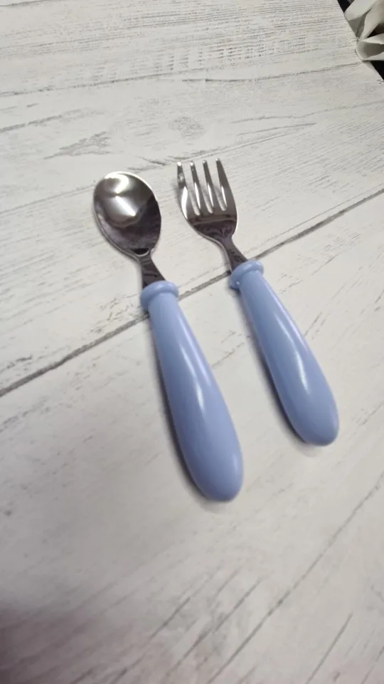 Попробовал 8-10 типов столовых приборов для ребёнка 1,5 лет (прямые и изогнутые). Эти ложка с вилкой — лучшие! Ребёнок взял их в руки сразу правильно. Ко рту подносит правильно, ест с них правильно. Об зубы металл не бьется. В ложку умещается много. Отличный товар, возьму ещё.