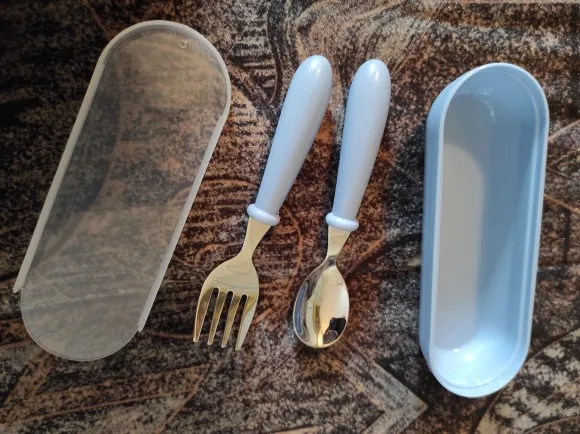 Классные приборы, ребёнку держать удобно, приятные на ощупь, удобно что есть чехол