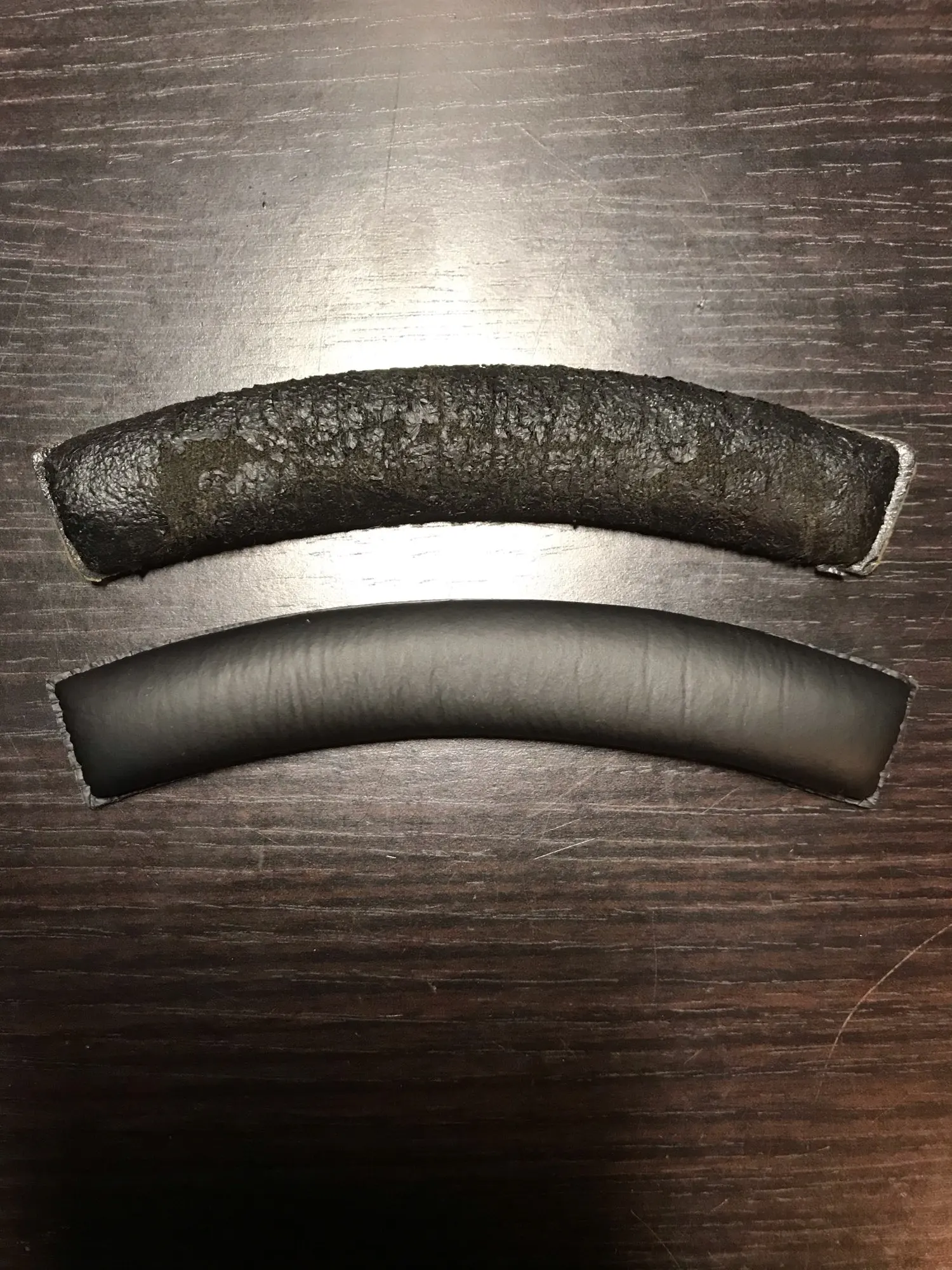 Немного тоньше (1 мм) и короче (2 мм), чем оригинал на Sennheiser HD457. Оригинальная Ткань, это «кожа». После замены наушники выглядят как новые и чувствуют себя комфортно.