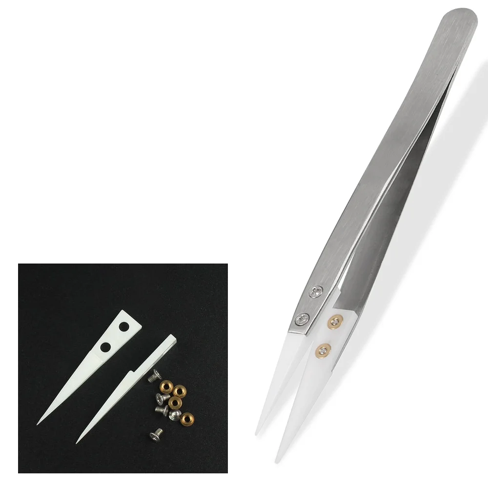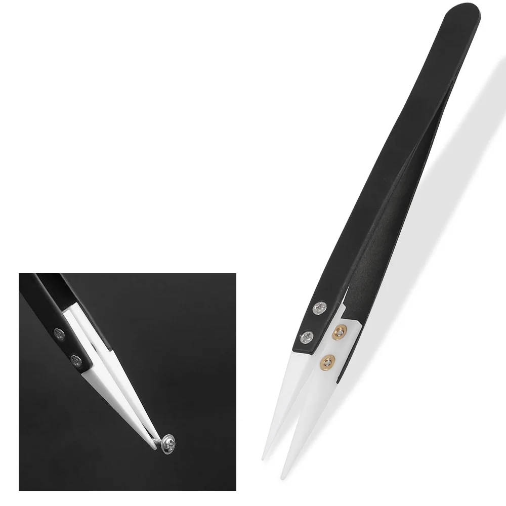 Пинцет прецизионные керамические пинцеты с наконечниками антистатические прямые пинцеты с ручкой из нержавеющей стали устойчивые к высоким температурам