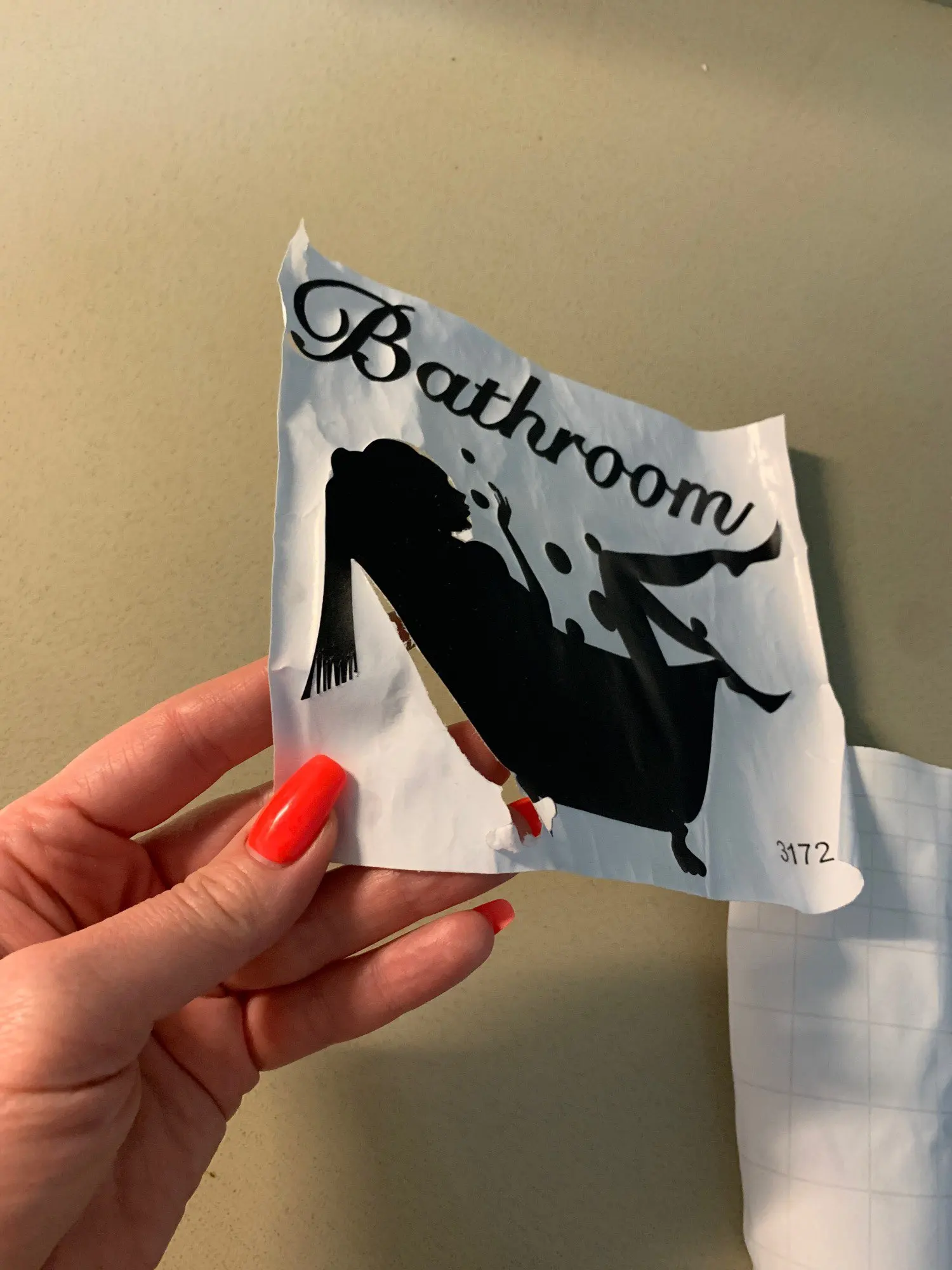Все как в описании, но большоц минус в том, что ооочень хреного эту наклейку отодратт от подложки, вообще не хотела отклеиваться, раслаивалась... Долго и упорно, еле еле получилось.. Наклеить получилось после на дверь ванны... Косяк толтко отделить от самой подложки..