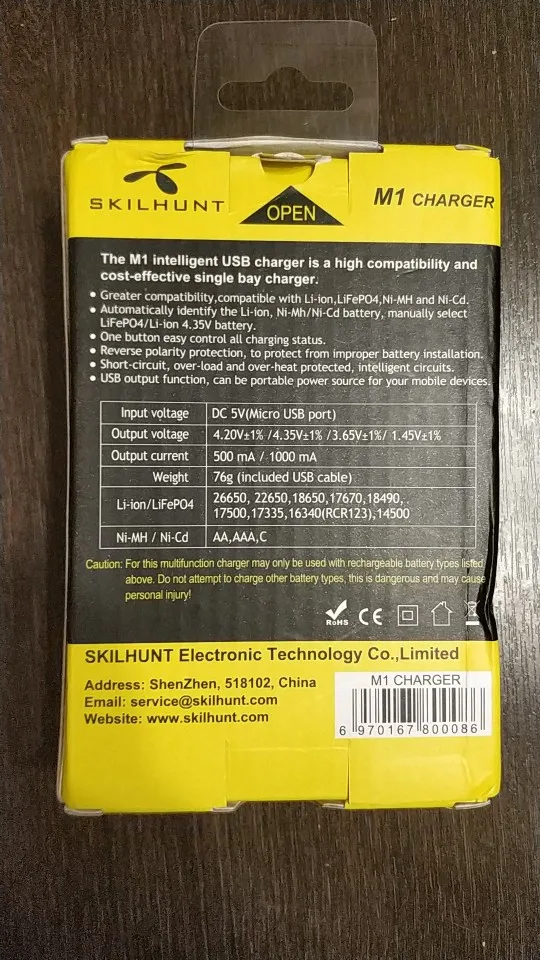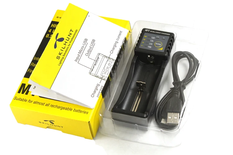 Умное зарядное устройство Skilhunt M1 с функцией внешнего аккумулятора USB и индикатором для аккумуляторов LiIon Ni-MH Ni-CD LiFePO4 IMR