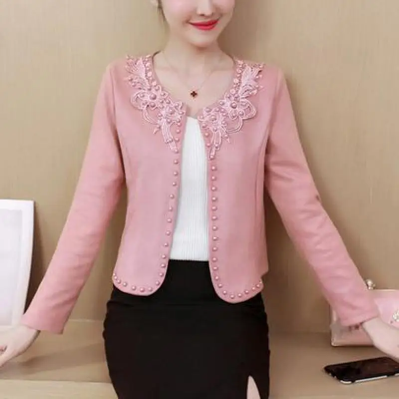 Женская верхняя одежда, весна-осень 2019, тонкая короткая куртка размера плюс, женская модная вышивка ногтей бусинами, белые замшевые пальто Casaco