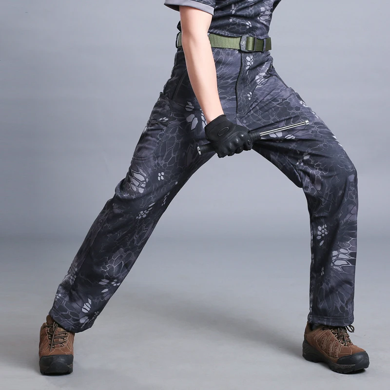 Водонепроницаемые тактические камуфляжные брюки в стиле милитари с мягкой оболочкой, мужские зимние теплые уличные брюки из кожи акулы, повседневные флисовые штурмовые брюки